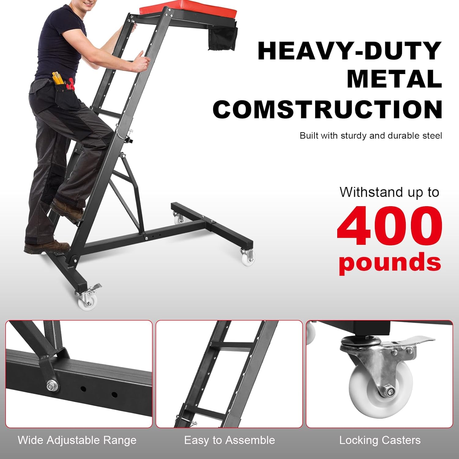 Topside Creeper for Trucks, 48"-64" Engine Creeper, 400 LBS Capacity High Top Creeper, 4 Swivel Caster Wheels,Heavy Duty Foldable Creeper for Home Garage,Auto Repair and Maintaince