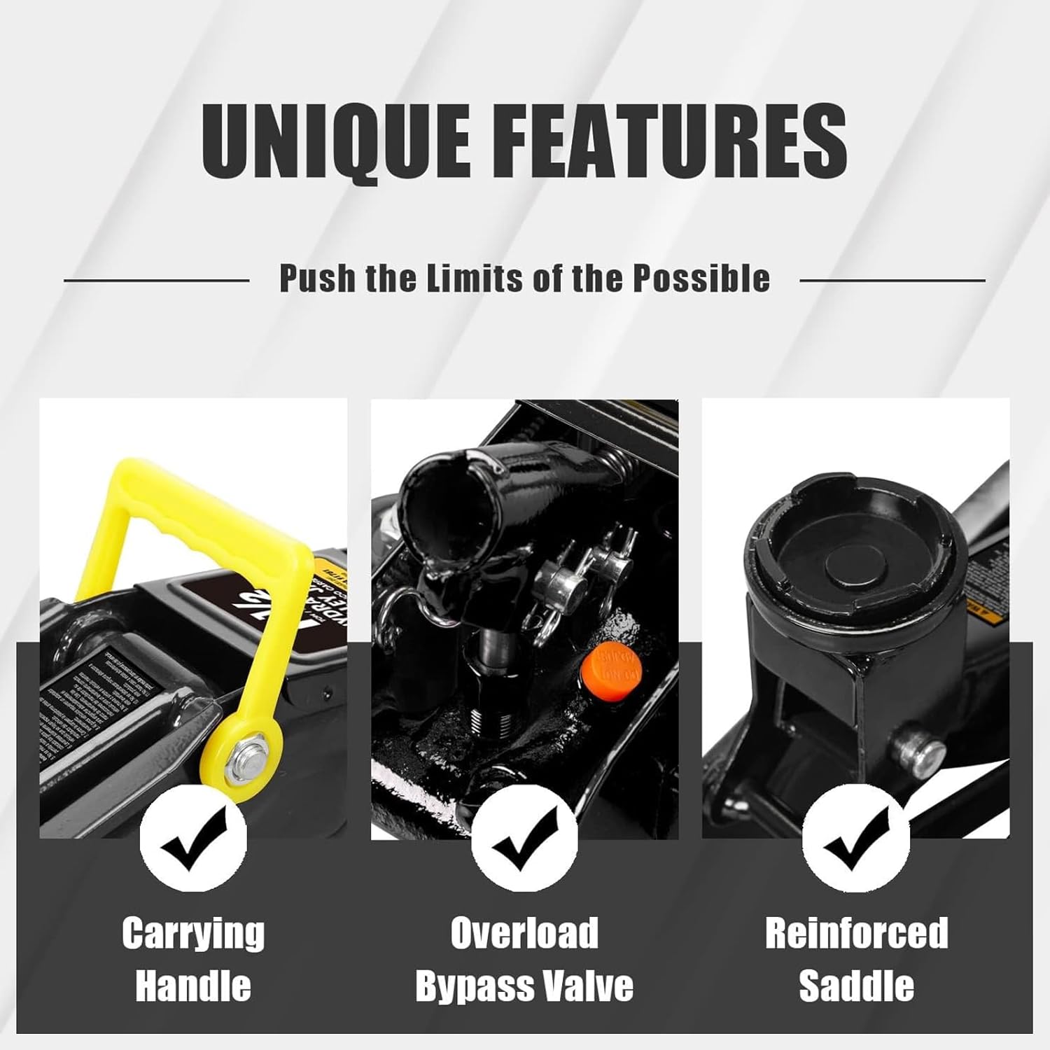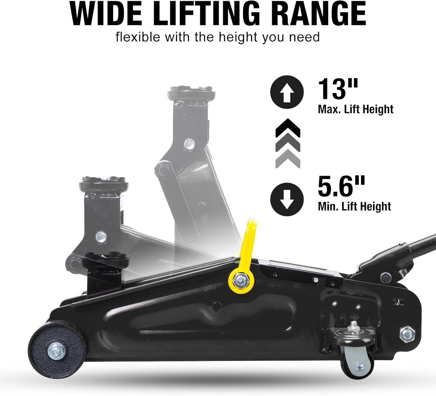 - Features a 1.5 ton (3,000 lbs) capacity with a minimum lifting height of 5-3/5" and a maximum height of 13"; Ideal for most cars, not recommended for SUVs and trucks