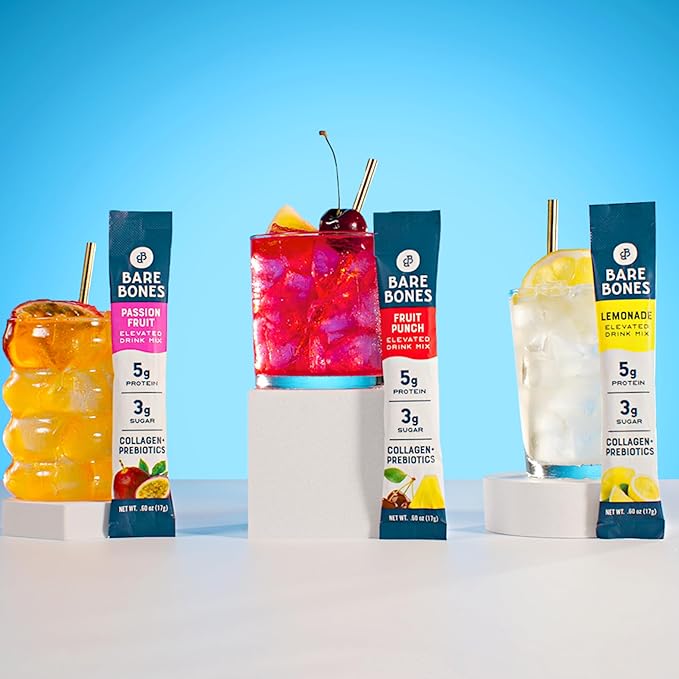 - POWERFUL INGREDIENTS: Bare Bones Elevated Drink Mix combines real fruit juice, a touch of sweet agave, agave inulin, and sea salt for a light, flavorful experience. Each convenient stick pack blends bold taste with thoughtfully selected ingredients, making it an easy and enjoyable part of your day—whether you're at home, at work, or on the move.