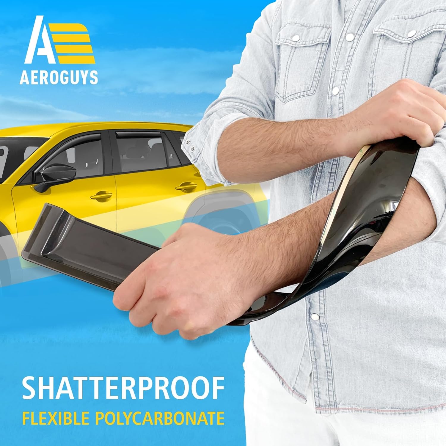 - Incredibly Durable AEROGUYS Auto Window Deflectors β They are made with strong and tough polycarbonate which is clear and scratch-resistant. They also provide UV protection making your ride more comfortable under all weather conditions.