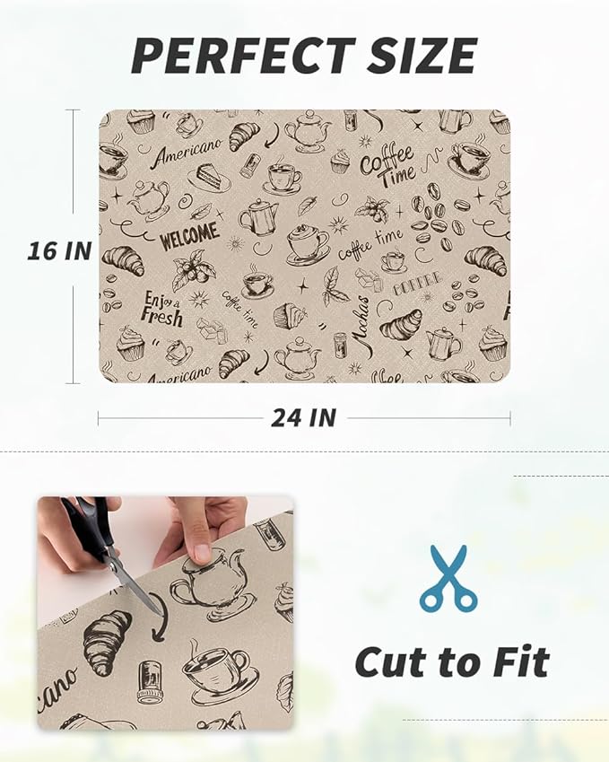 - EASY CLEAN & Quick DRY: No need to clean frequently because hide stains well. Up to 90% porosity material enable the coffee bar mat air dry quickly without machine