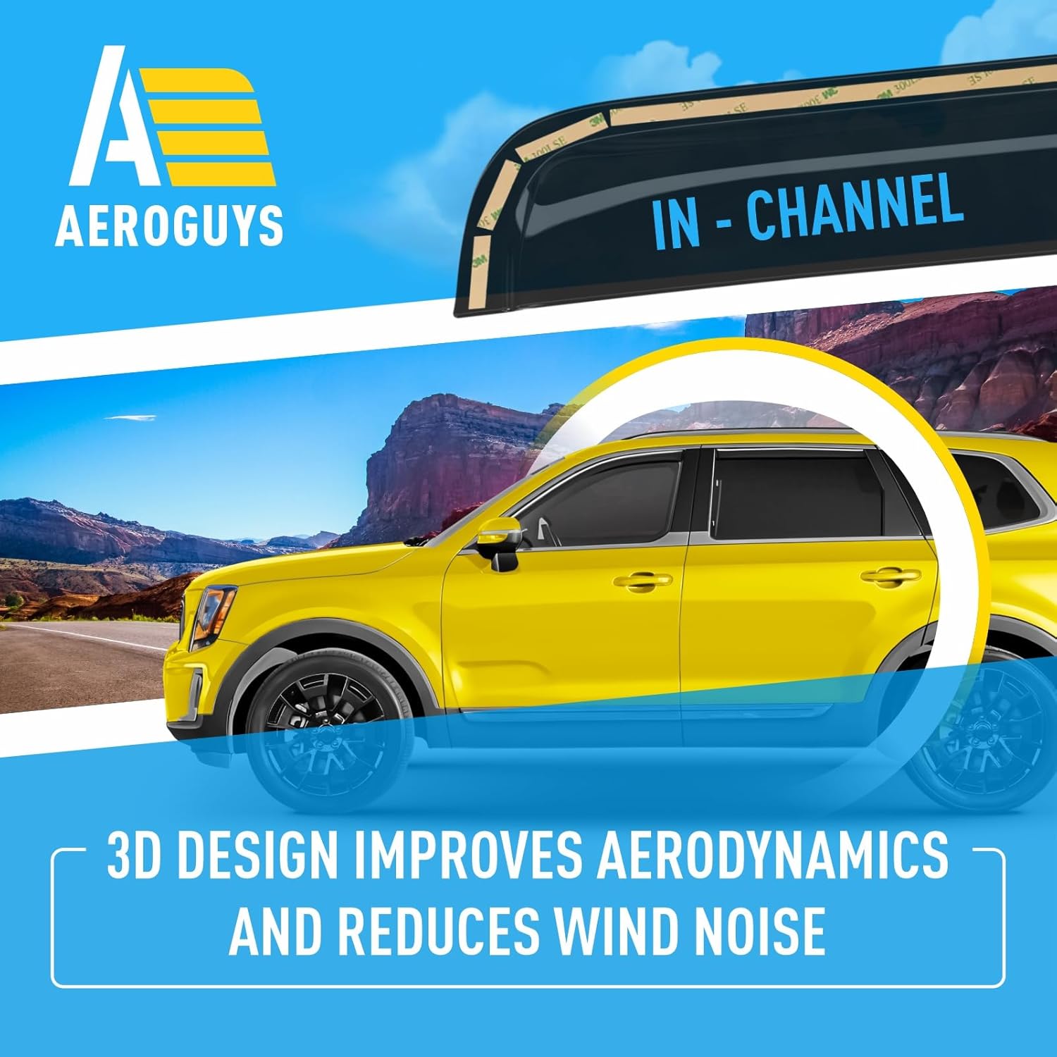 - No Tools Needed, Quick and Easy Assembly β These rain guards are very easy to fit. IN-CHANNEL INSTALLATION provides perfect fit for your car. Just slip it onto your carβs window and your job is done within minutes. There is no drilling or no tools required. Be sure that AEROGUYS window deflectors are water resistant, sun protective and will not bend, break or crack regardless of the weather conditions.