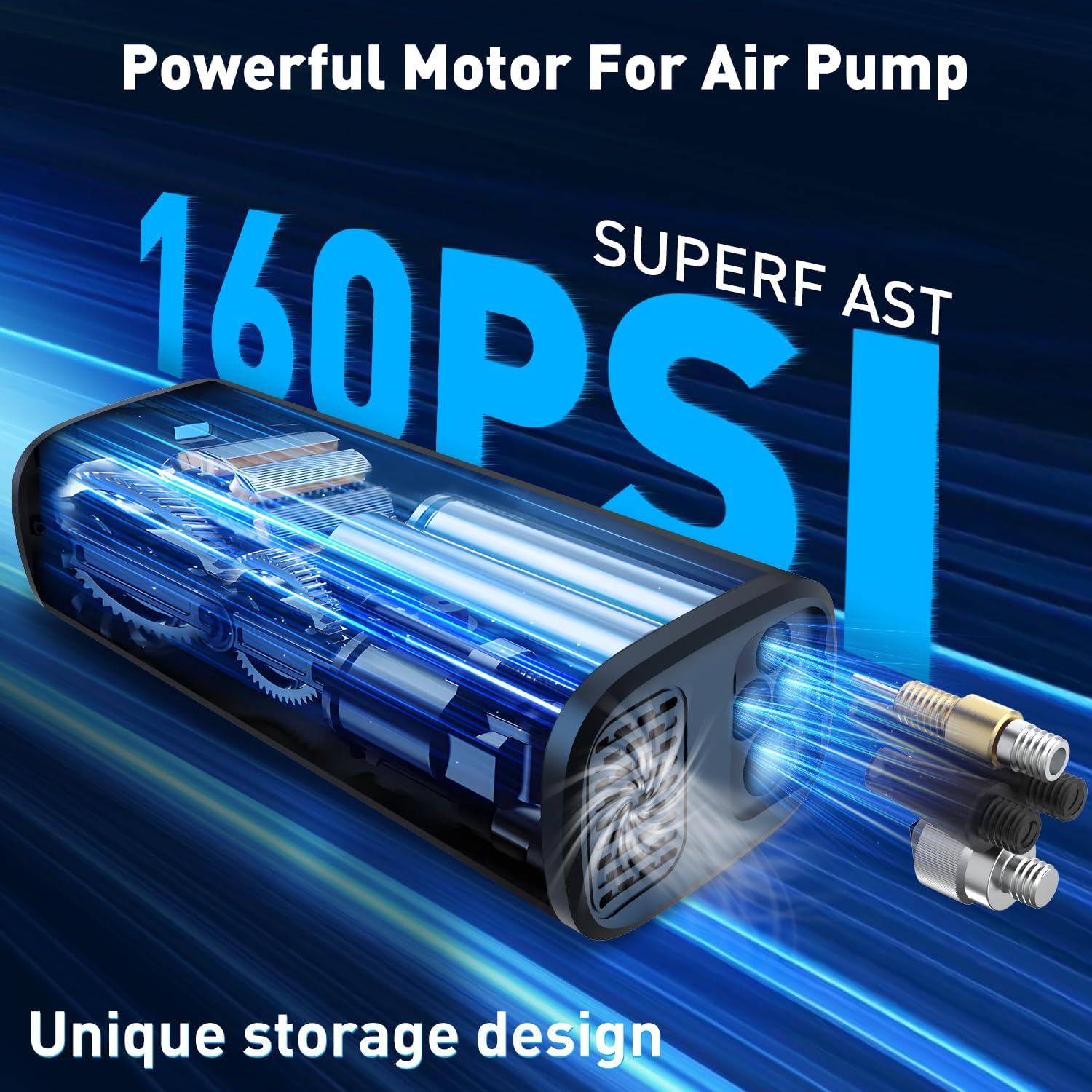 Tire Inflator Portable Air Compressor - tire inflator 25000mAh & 160PSI,4X Fast portable air compressor with LCD Digital Tire Gauge Pressure,Cordless air pump for car tires,bike, Motorcycle, Ball