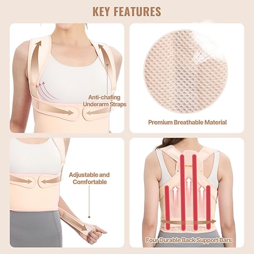 - FULL BACK SUPPORT & PAIN RELIEF: Say goodbye to neck, shoulder and back pain with our back brace posture corrector. Featuring four removable fiberglass support rods, it straightens your spine, reduces shoulder and neck pressure, and promotes spinal health for comprehensive pain relief.