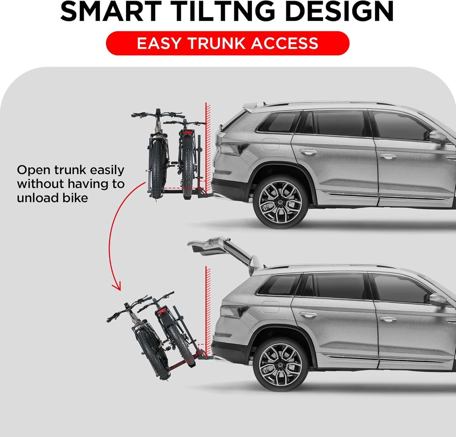 - SAFE AND SECURE ON OFFROAD: Comes with 2-arm fix, Anti-falloff 360Β° swirl structure and anti-wobble structure, that secure your E-bikes in place without swaying and knocking against vehicle.