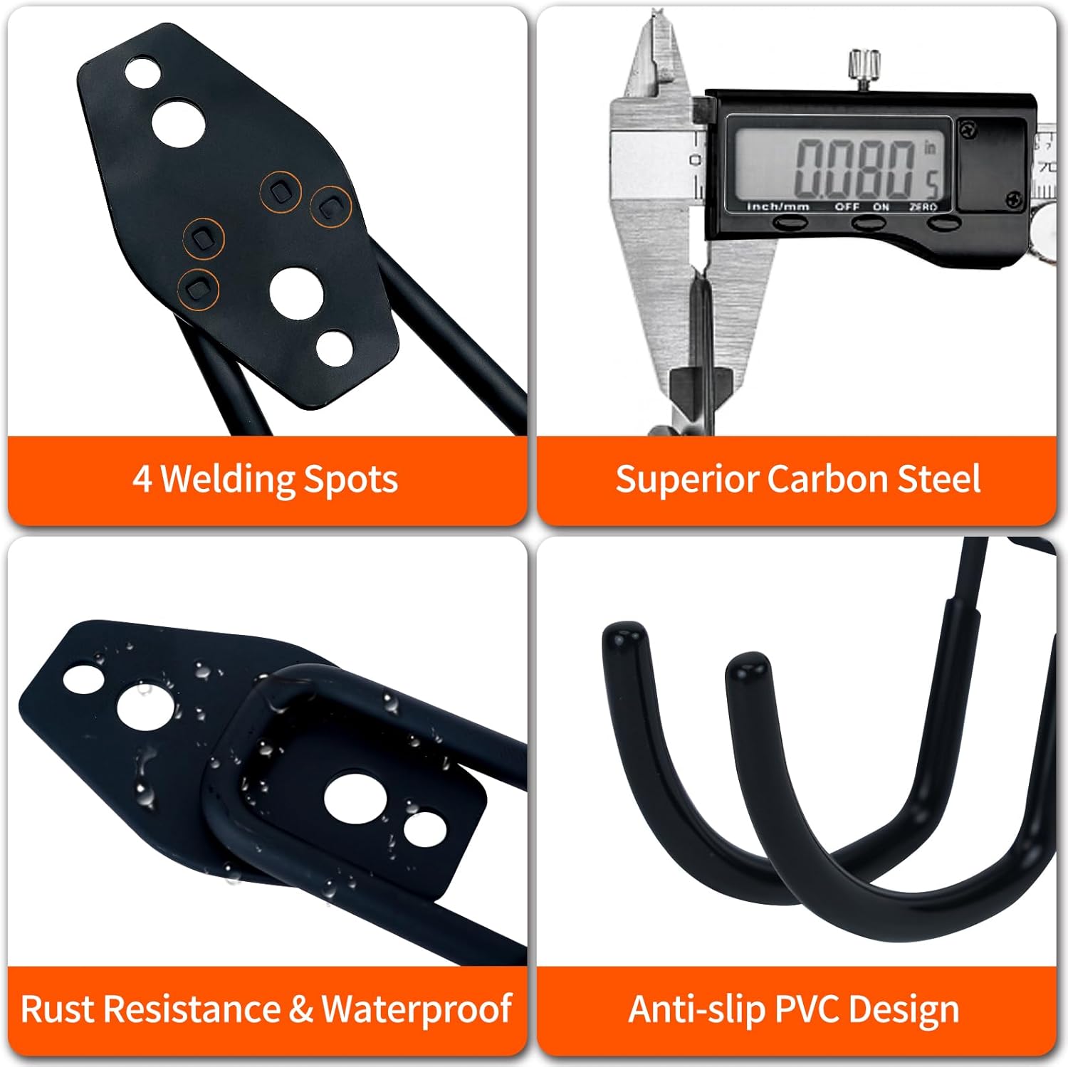 - Upgraded Design: Unlike the market’s most hooks, our heavy duty garage hooks come with 4 welding dots, which offer more sturdy and durable load-bearing capacity. The PVC coating design prevents slipping and corrosion for a long-lasting use and wide application.