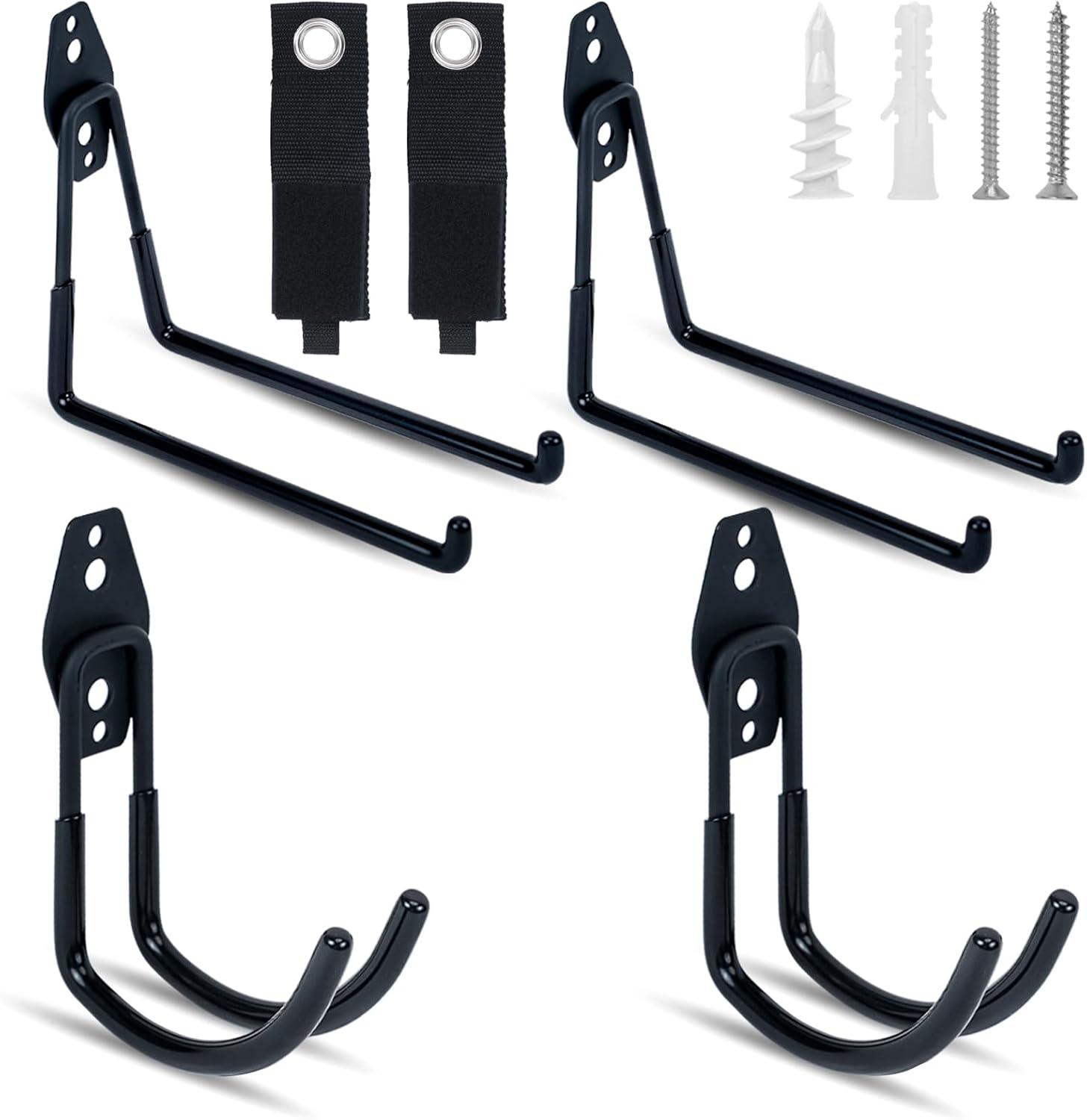 - Space Saving: This hooks kit with 2 extension cord straps is perfect for garage organization, and free up your space such as garage, garden, yard, gym, workshop, basement, barn, shed or any other space. You can hang power tools, bikes, ladders, shovels, strollers, ropes, cables and accessories to keep your space clean.