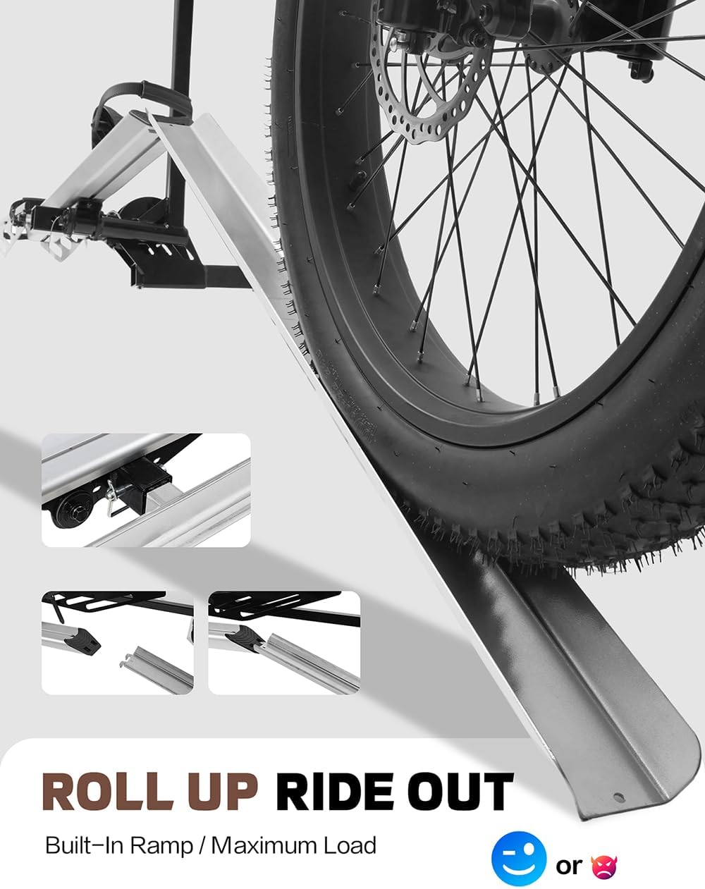 - 100 LB TOTAL CAPACITY: Built for durability and strength, this bike rack boasts an impressive 100lbs capacity, securely accommodating heavier electric bikes or multiple conventional bicycles with ease. Trust in its robust construction for reliable, strain-free transportation.
