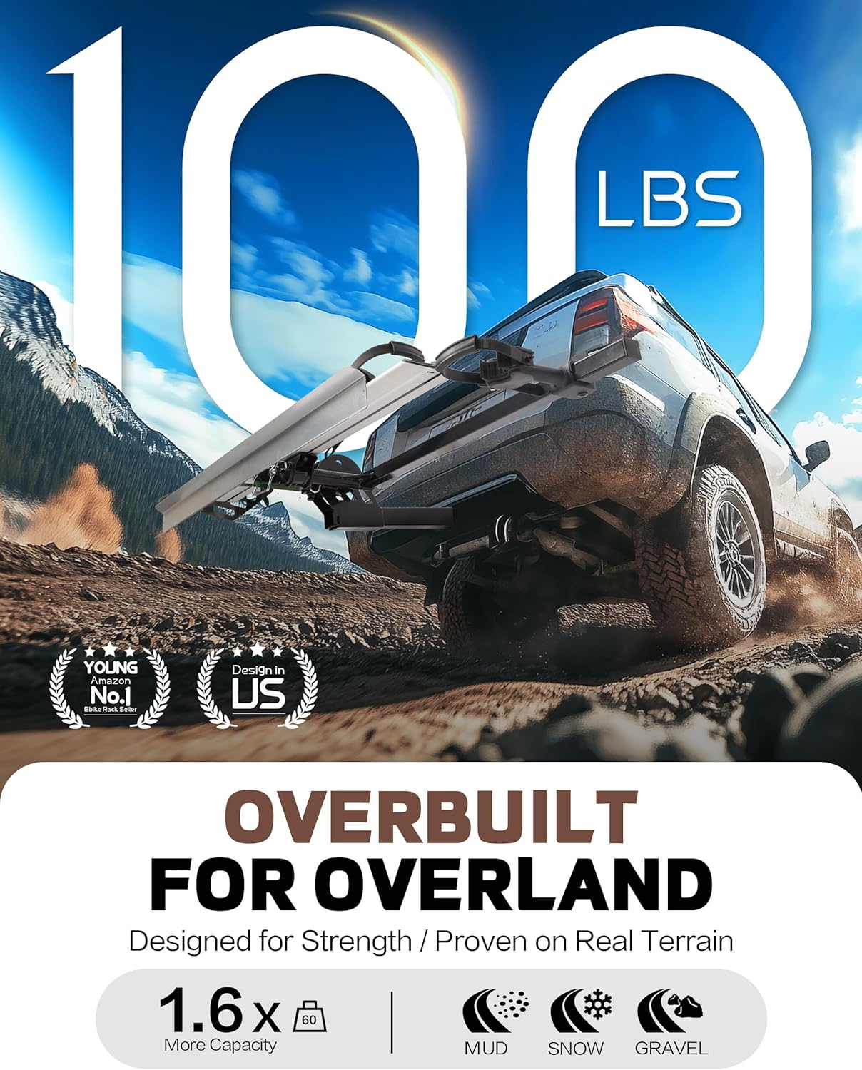 - DURABLE & SAFE: Young Electric bike rack is constructed with reinforced steel and aluminum which makes it durable and powerful enough to carry 1 bikes weighing 100 lbs. Comes with 1-arm fix, patent secure wheel cradles and anti-wobble structure, that secure your E-bikes in place without swaying and knocking against vehicle.