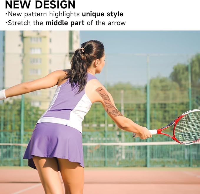 - New design: CKeep kinesiology tape precut strips can be easily apply without the extra step of cutting, the new pattern highlights unique style and the arrow explains which part of the tape you should stretch. Rounded corners keep tape from catching clothing and pulling up.