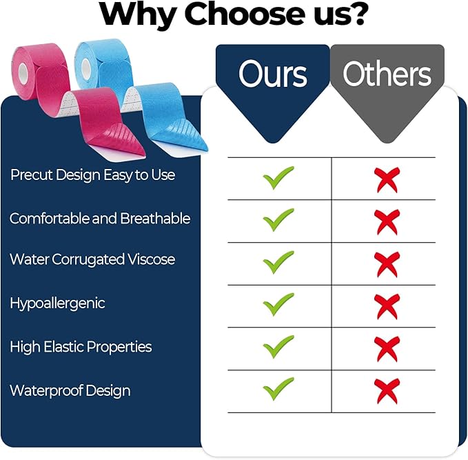 - Long-Lasting Support: Elastane and strong adhesive stays on 3-4 days, kinesiology athletic tape resistant to sweat and water, this waterproof Kinesiology tape precut stays put, after you swimming and bathing