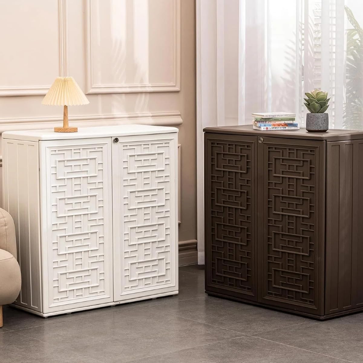 - Durable: The outdoor cabinets made of HDPE durable UV resistant resin will be rustless,colorfast,and waterproof,can be for several-years use,a great deck box for you to choose.