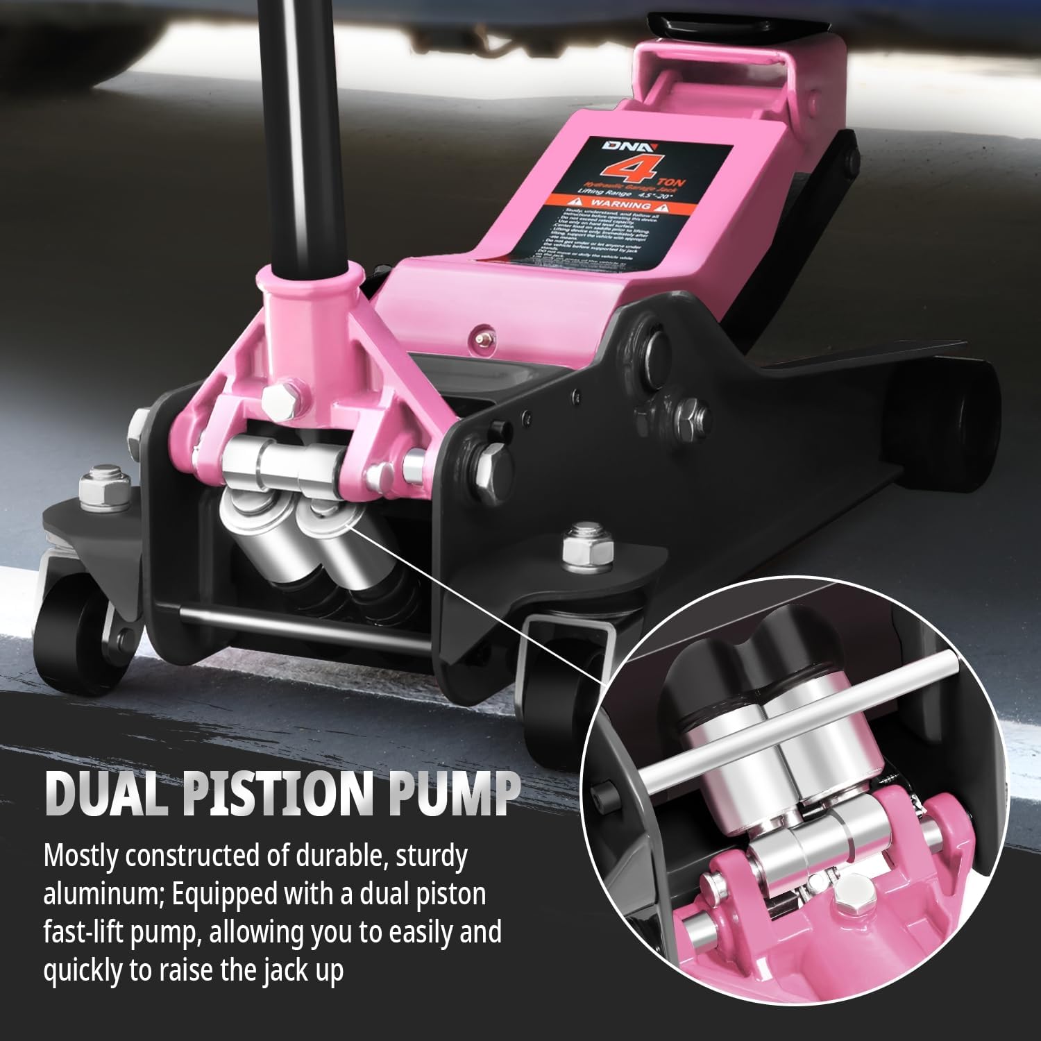 DNA MOTORING Floor Jack 4 Ton (8000 lbs) Capacity, Fast Lift Low Profile Hydraulic Trolley Jack, Steel Heavy-Duty Service Car Jack, Lifting Range 4.5"-20", Pink, TOOLS-00308-PK