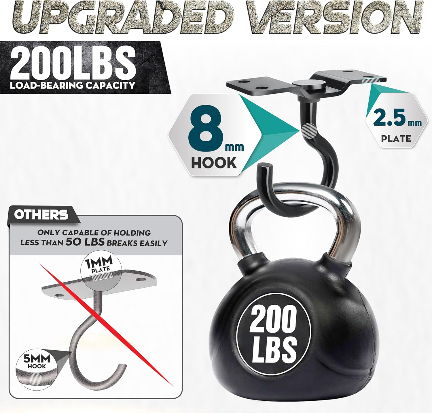 - [200 LBS Load-Bearing Capacity] Our ceiling hooks for hanging plants have a base with four firmly drilled holes and durable construction, which boasts an impressive loading capacity compared to others on the market. With the ability to carry a high load-bearing weight of up to 200 lbs, this hanging plant hook outdoor ensures it delivers dependable performance for many years.