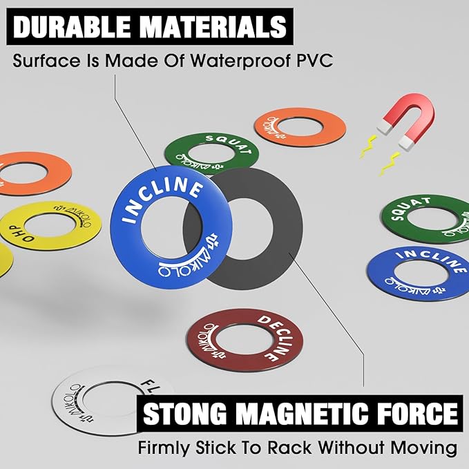 - 【Durable and Long-Lasting】: Crafted from waterproof PVC with a strong magnetic backing, these markers are built to last. The clear print on each marker can withstand heavy use, so you can focus on your workout without worrying about wear and tear.