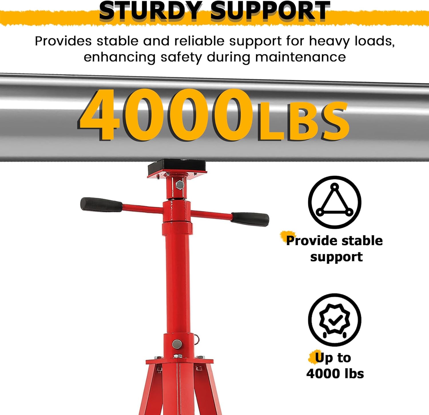 KUAFU 47.375"-84.5" Automotive Under Hoist Tripod Stand 2 Ton High Lift Jack Stand Reach Under Hoist Stand 4000lbs Capacity Powder Coated Red