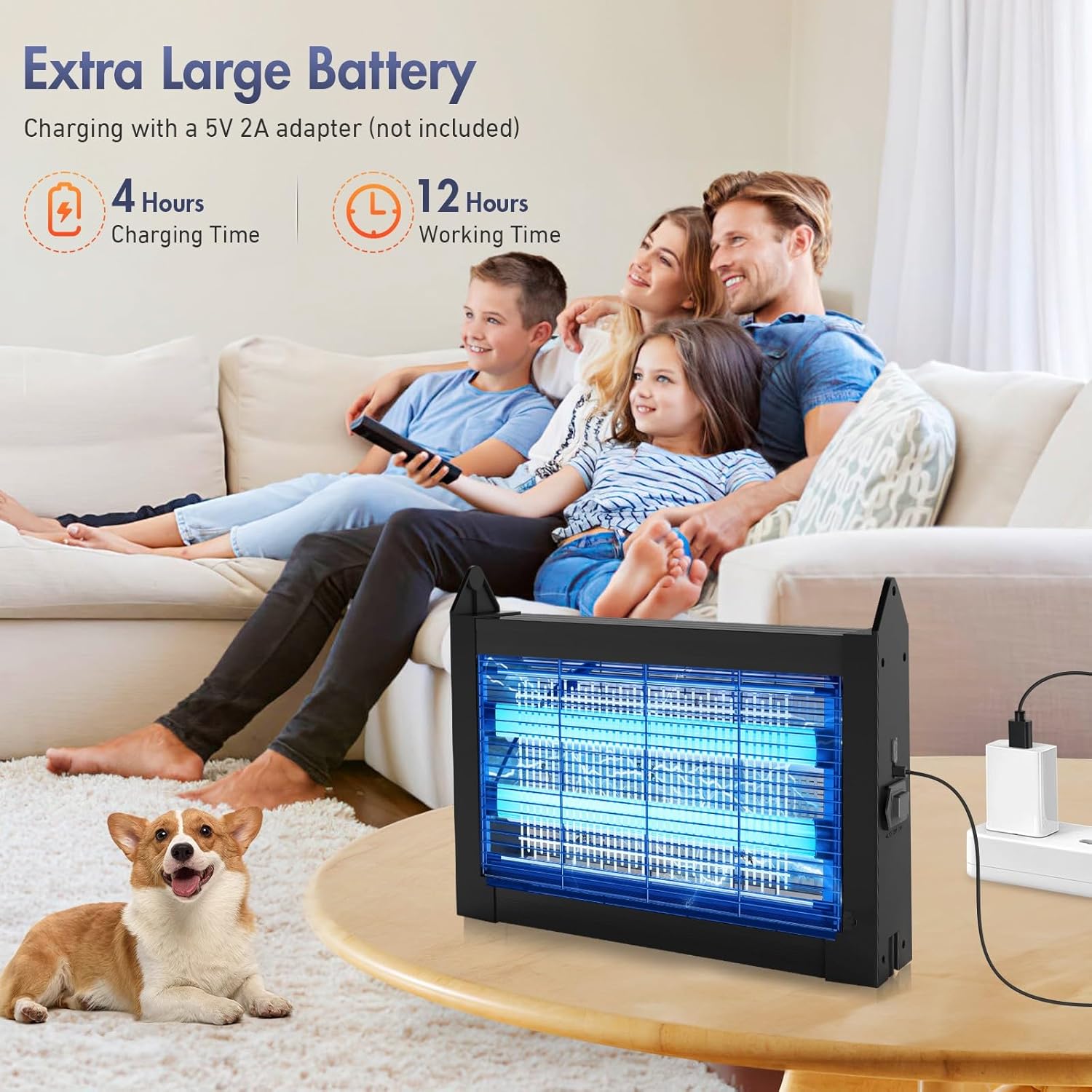 - 4000mAh Large-Capacity Battery β Jinyeda Solar bug zapper outdoor is equipped with a large solar panel adjustable for optimal sunlight absorption, or conveniently charge it with the included TYPE-C cable. With a full charge, it delivers up to 12 hours of continuous operation, ensuring all-day and night mosquito protection.