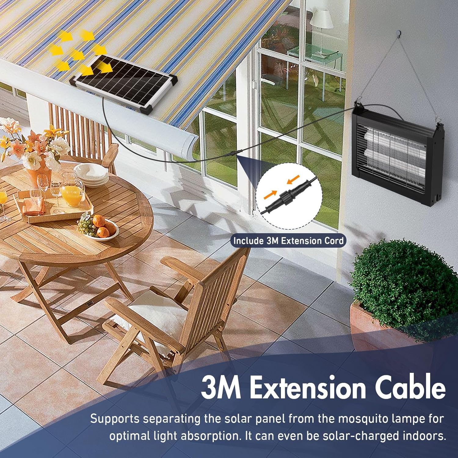 - Detachable Solar Panel for Optimal Charging β The mosquito zapper solar panel can be easily removed and placed in a sunlit area using the included 9.8ft extension cord. This allows for efficient solar charging, even if the lamp itself is positioned in a shaded or indoor area. Without worrying about placement limitations, ensure uninterrupted mosquito protection day and night.