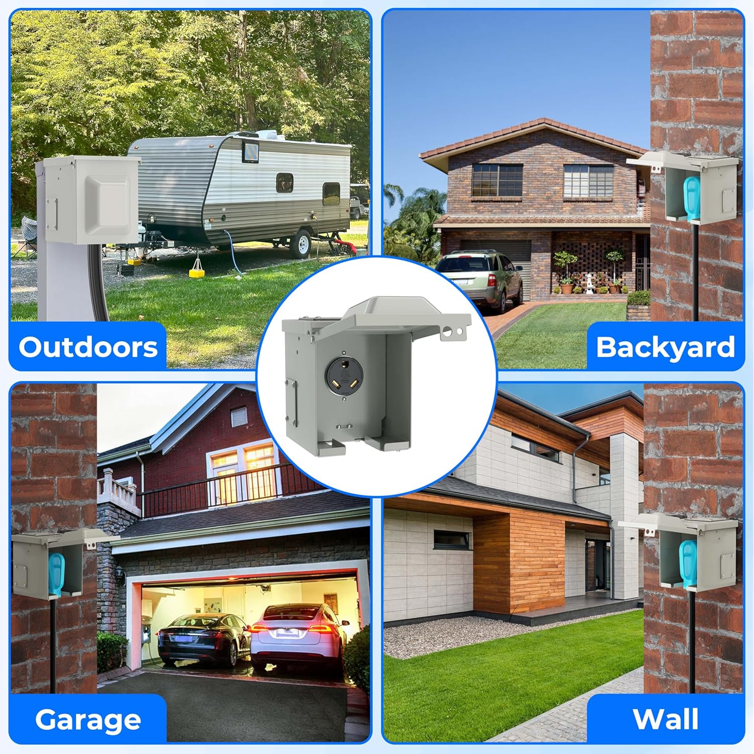 30 Amp RV Power Outlet Box, NEMA TT-30R 125V RV Outdoor Electrical Receptacle Panel, Weatherproof, for RV Camper Travel Trailer Electric Car Generator