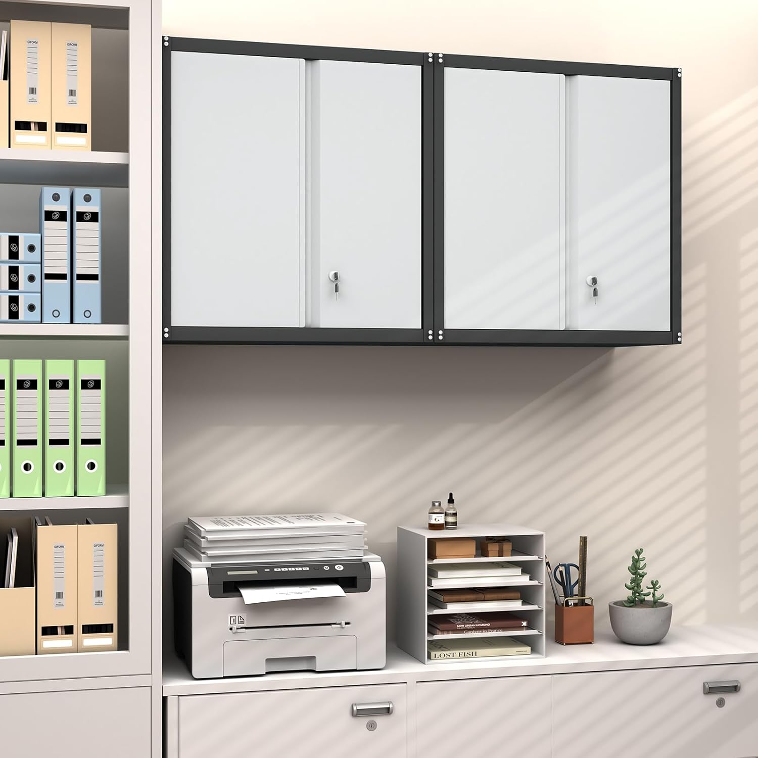 GREATMEET Metal Wall Cabinet, Wall Mounted Garage Cabinet, Locking Metal Storage Cabinet with Doors for Home Office, Garage, Utility Room