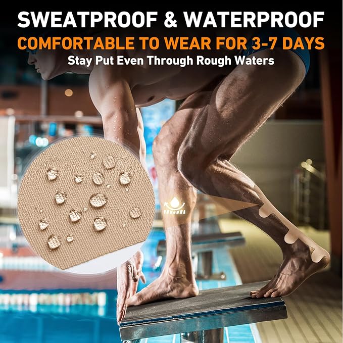 - ๐ง Durable Waterproof Material for Every Workout โ Built with upgraded waterproof technology, our athletic tape for achilles tendon stays firmly in place during intense workouts or even swimming sessions.