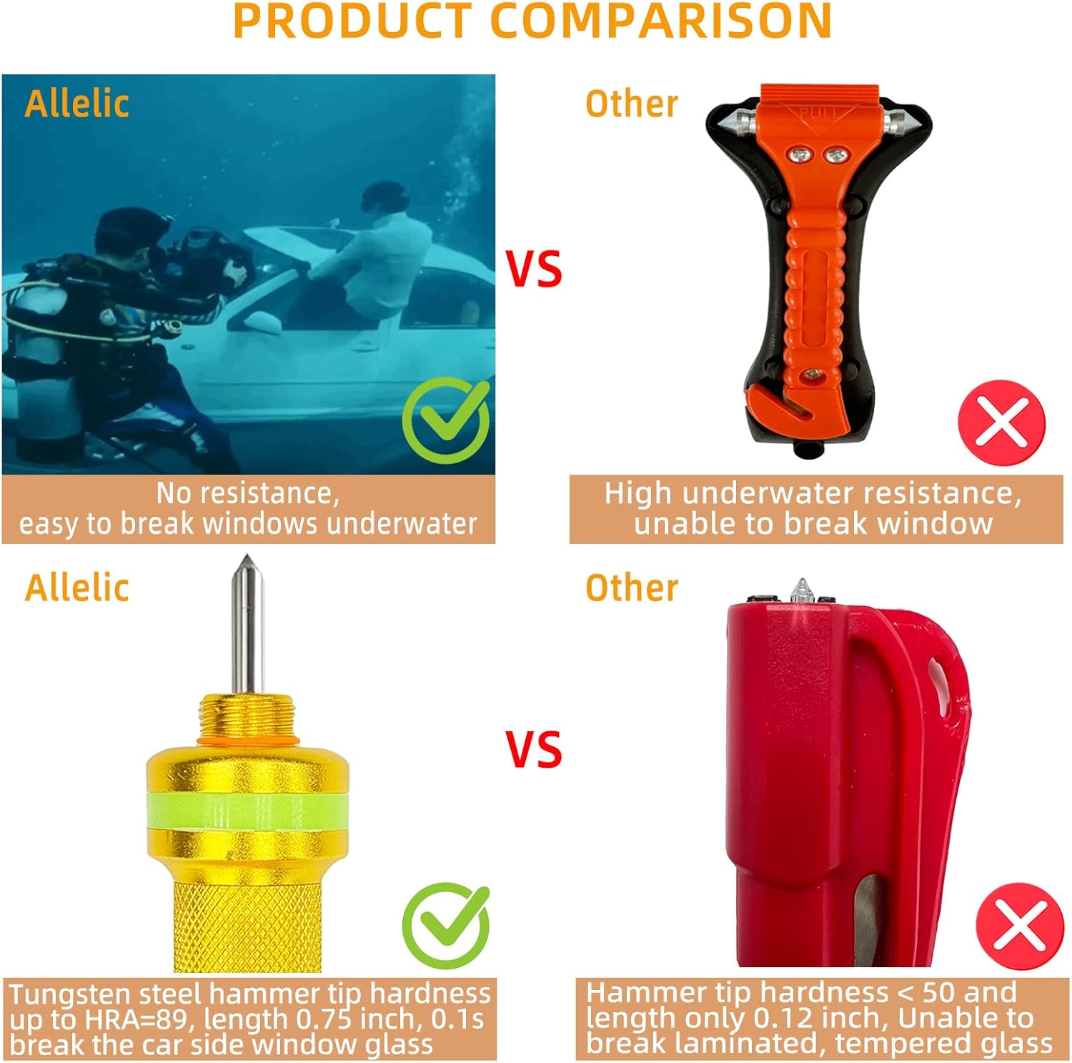 - Applicable Underwater: Compared with traditional glass breaker, This spring loaded window breaker seatbelt cutter can easily break windows even underwater, not afraid of water pressure interference