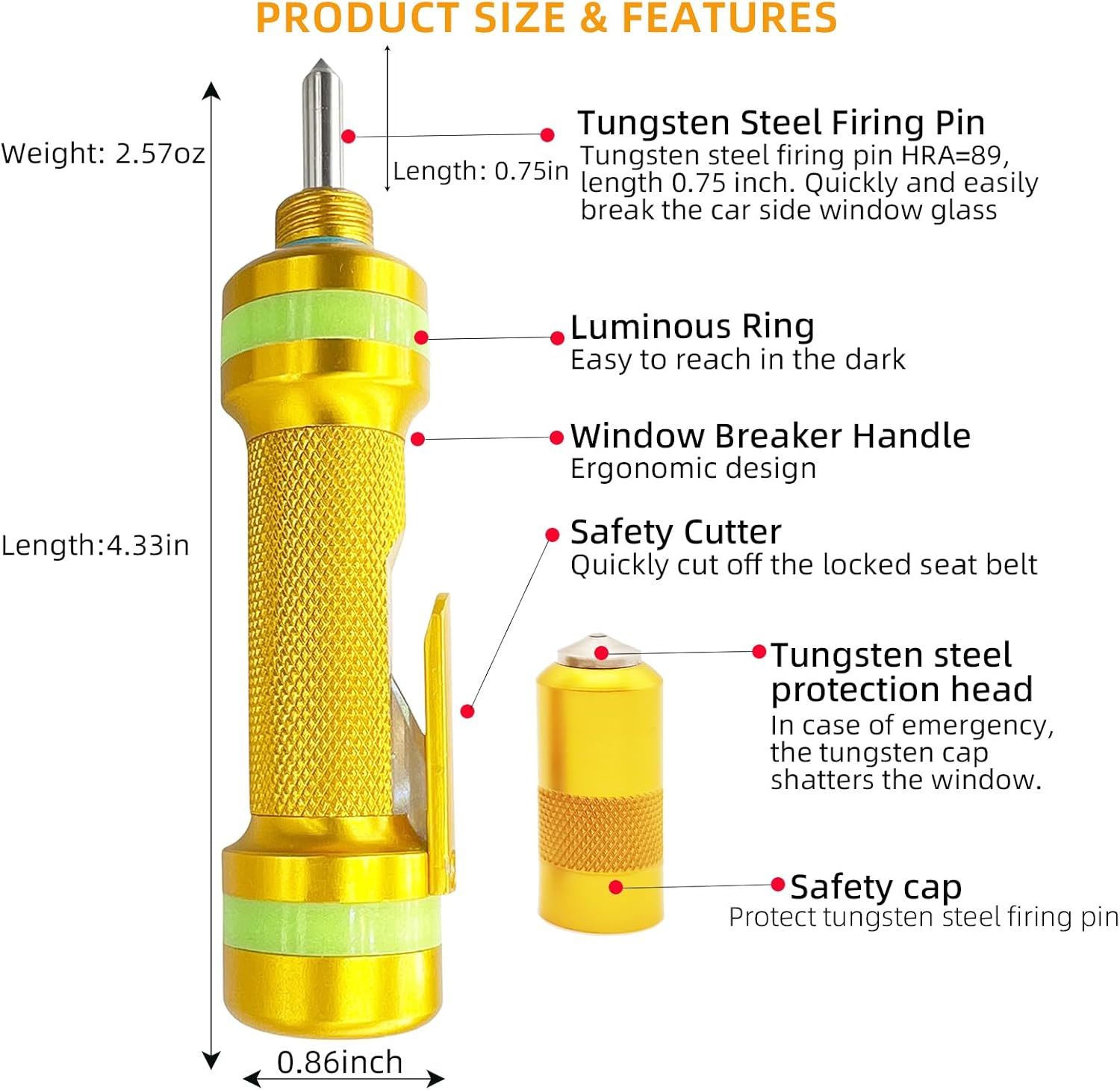 - Excellent Service: The product has been rigorously tested to ensure product performance. We provide you with excellent after-sales service to ensure that you can buy the car glass breaker