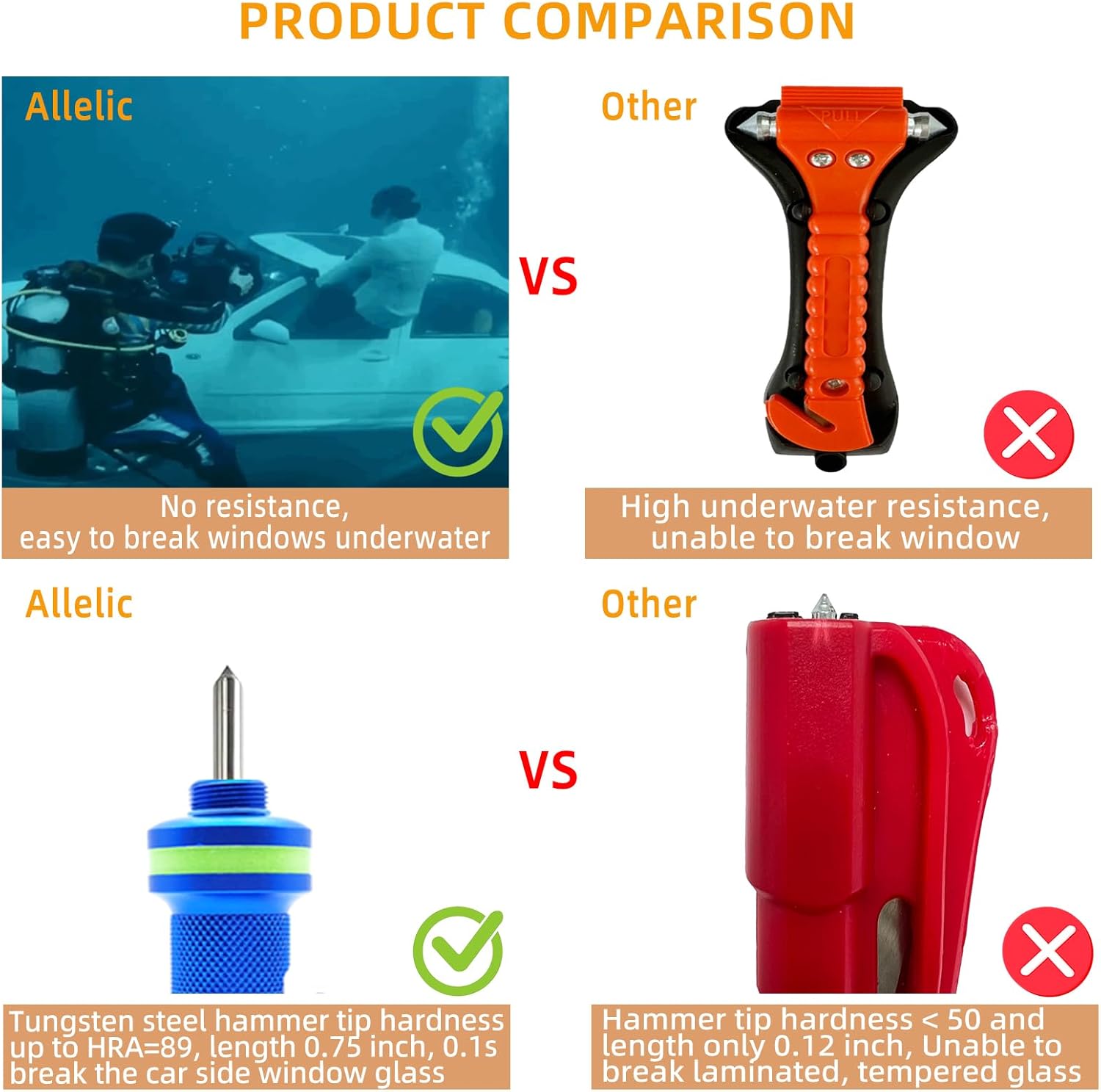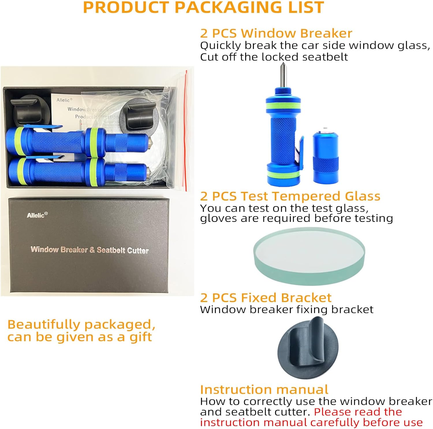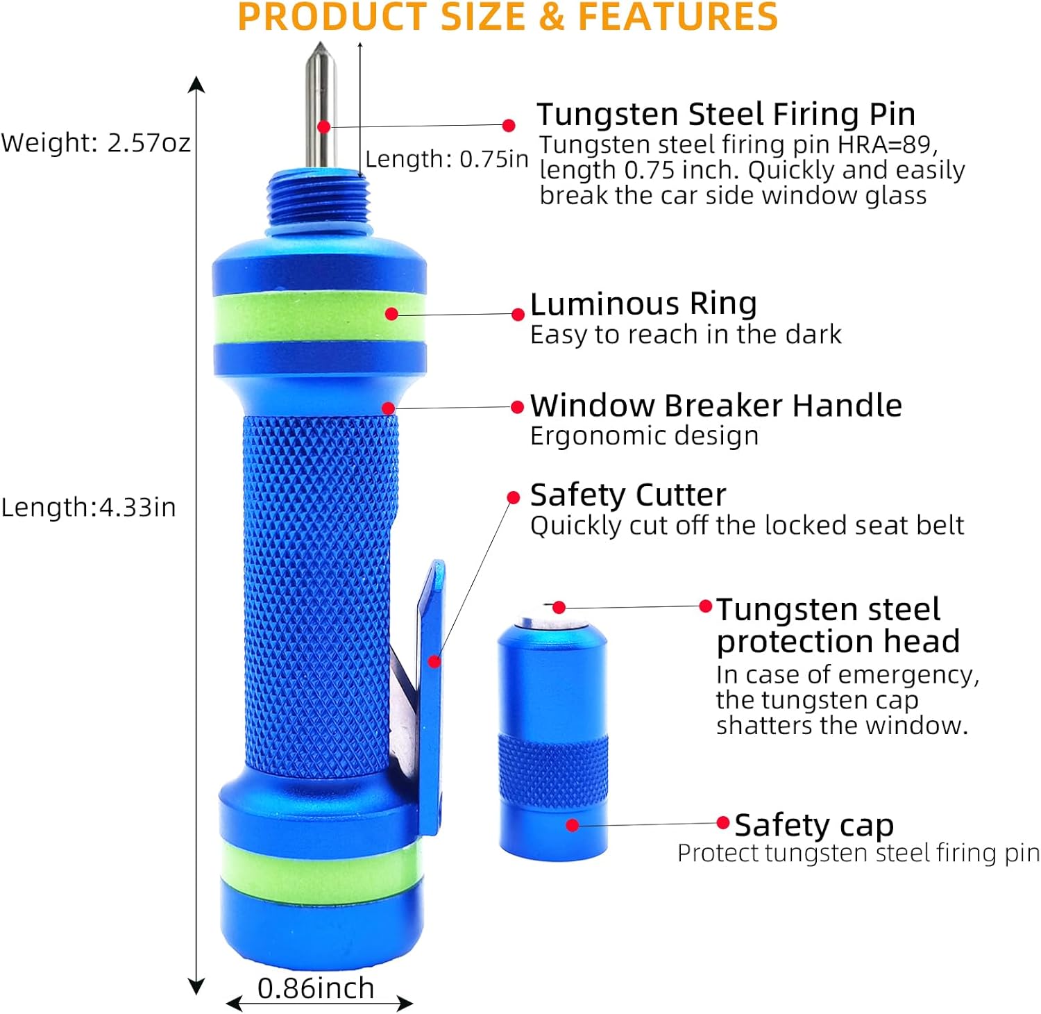 Allelic Car Window Breaker Tool, Window Breaker Seatbelt Cutter, Window Breaker, Glass Breaker, Spring-Loaded Window Breaker for Land & Underwater (Blue, 2 PCS)