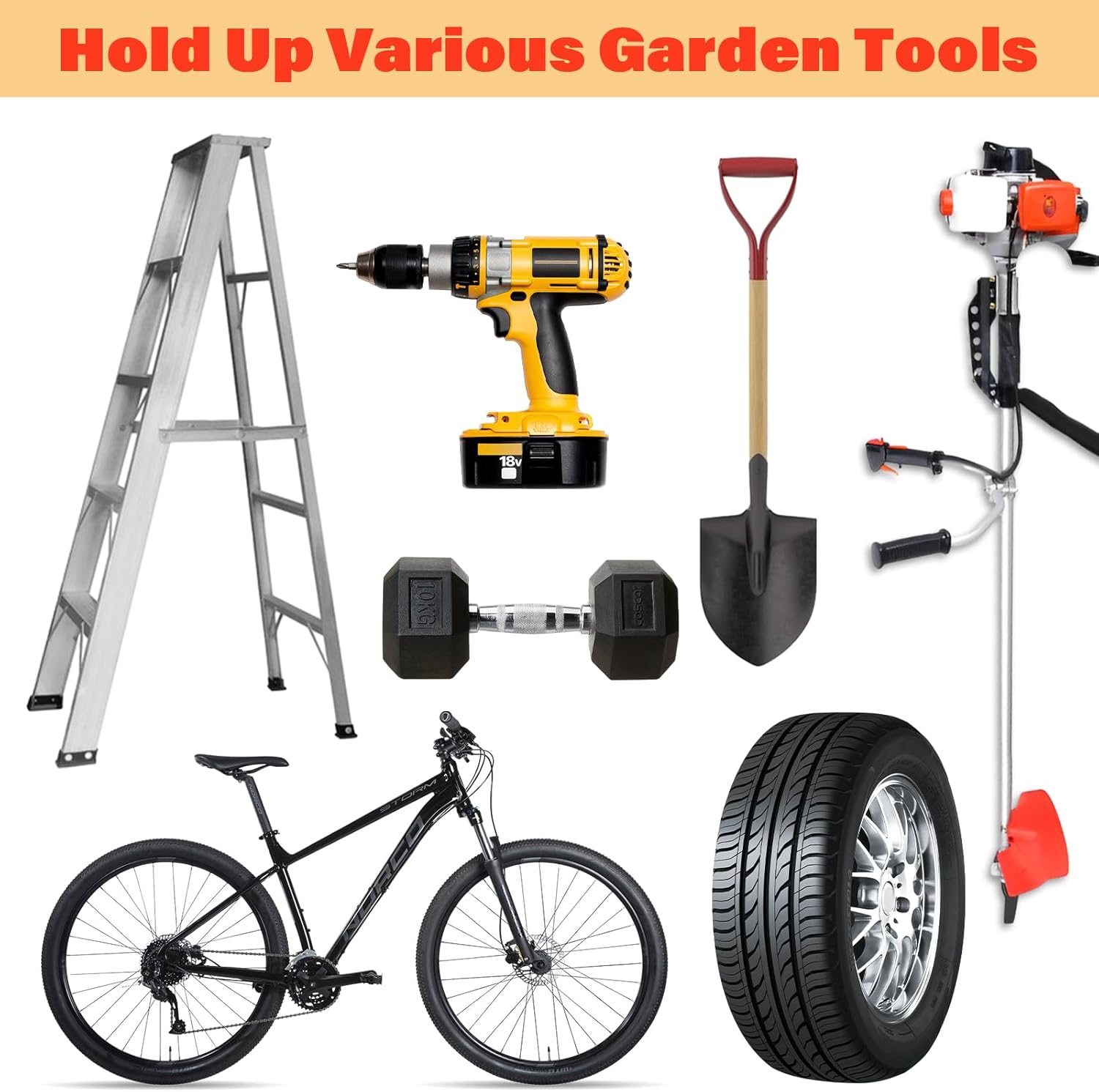 - Space-Saving Design: Store and retrieve tools in seconds with these garage wall hangers. They free up space in garages, sheds, etc. Install anywhere on the wall for effective space organization.