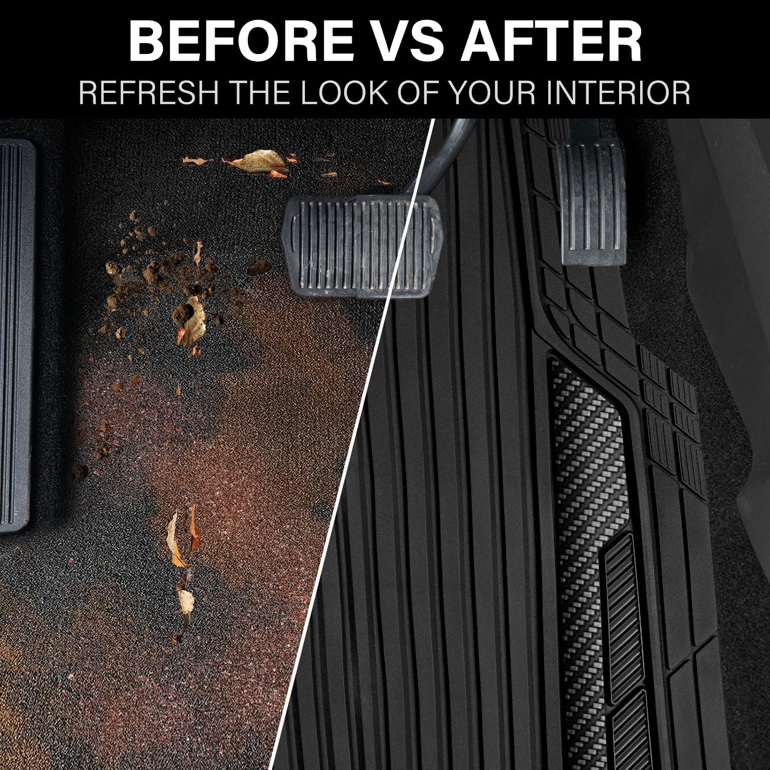 CAR PASS Heavy Duty Rubber Car Mats Metallic,Aluminum Film All Weather Floor Mats Waterproof Universal Trim to Fit SUVs Sedans Vans 4 Piece Anodized Deep Dish Two-Tone Sporty Carbon Fiber Black Chrome