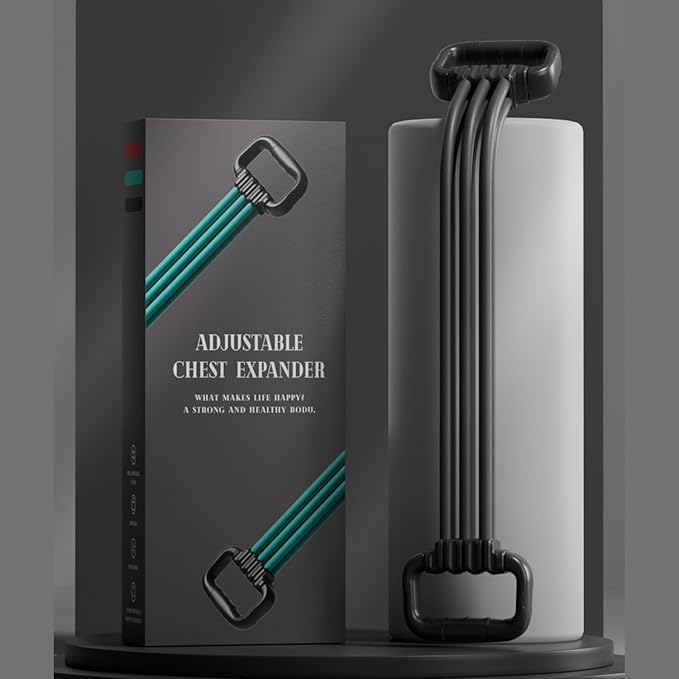 6-Pipe Chest Expander & Shoulder Stretcher - Adjustable Detachable Resistance Tubes for Home Gym, Rehab, Strength Training + Easy Workout Guide (Men/Women)