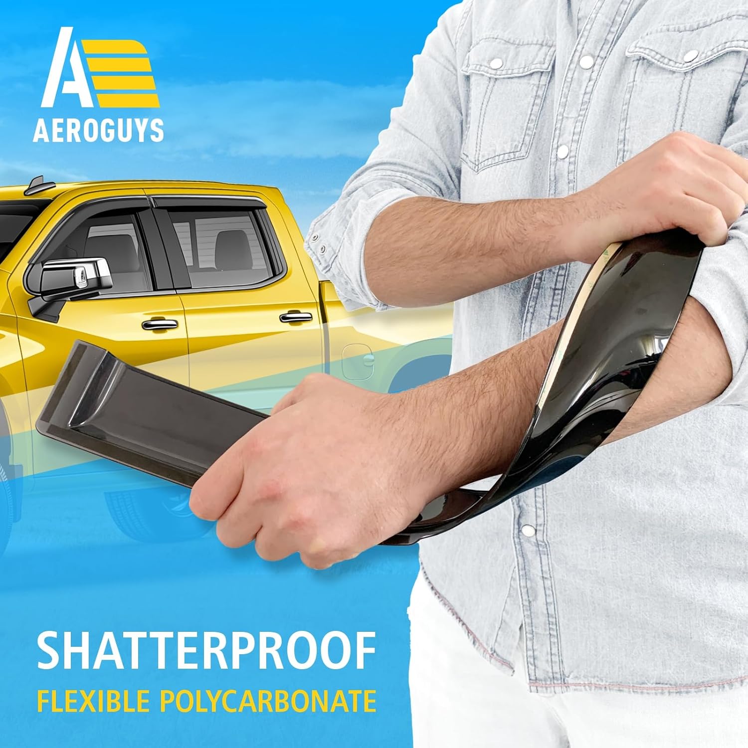- Incredibly Durable AEROGUYS Auto Window Deflectors β They are made with strong and tough polycarbonate which is clear and scratch-resistant. They also provide UV protection making your ride more comfortable under all weather conditions.