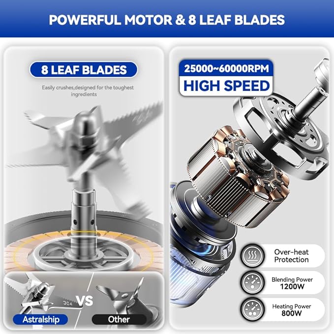 - 1200W High-Speed Power for Ultimate Efficiency β The ASTRALSHIP ASH01-S stainless steel high speed blender is engineered for performance, crushing ice, blending fruits, and pureeing vegetables with ease. Its ultra-sharp blades and durable glass pitcher make it the perfect glass blender for smoothies, soups, or sauces, etc.