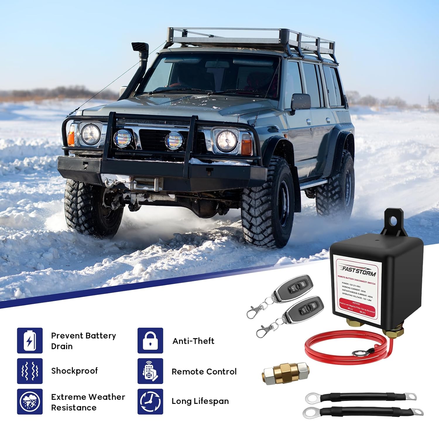 - Wide Applications: Our 250A car battery disconnect switch comes with two paired wireless remote fobs, the remote control can be controlled within 100 meters, This 12v remote control switch is suitable for Car, Truck, Boat, RV, Travel Trailer, Camper, SUV, ATV, UTV, Marine, Van, Agricultural Vehicle Trike Auto Off Road Jeep
