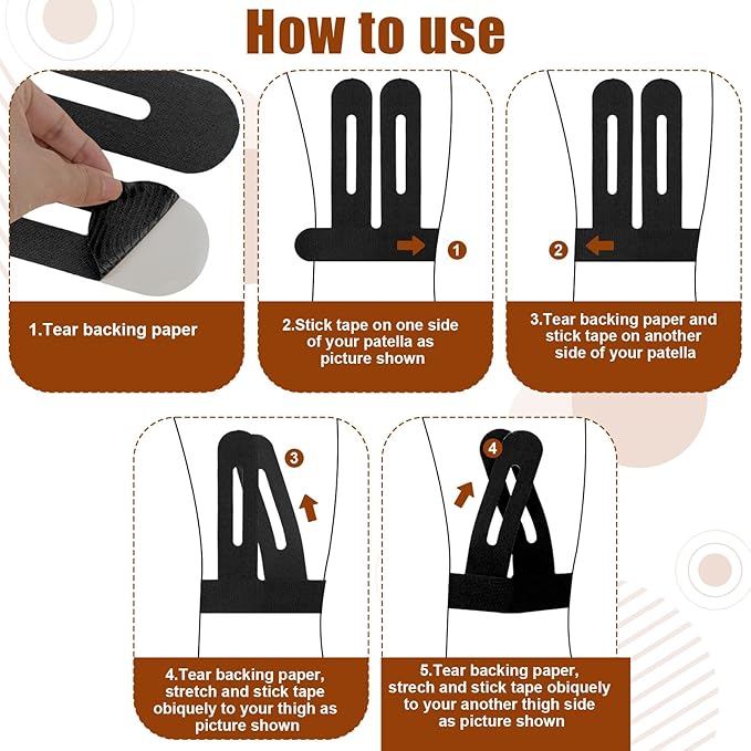 - Tape Precut Strips: This kinetic tape for knee is designed with a single pre-cut piece of construction that naturally conforms to the contours of the knee. No scissors are needed, so it's ready to use right out of the package, saving time and allowing for a seamless fit