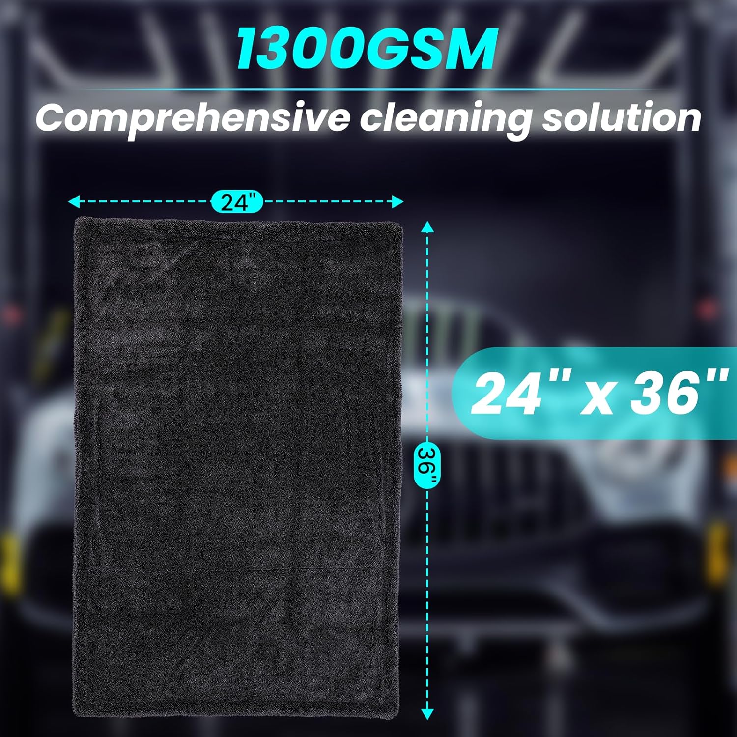 2 Pack 1300 GSM Car Drying Towel,Double-Sided Microfiber Towels for Cars(36" x 24"),Extra Large Ultra Absorbent,Without Residual Lint,Scratches or Water Spots