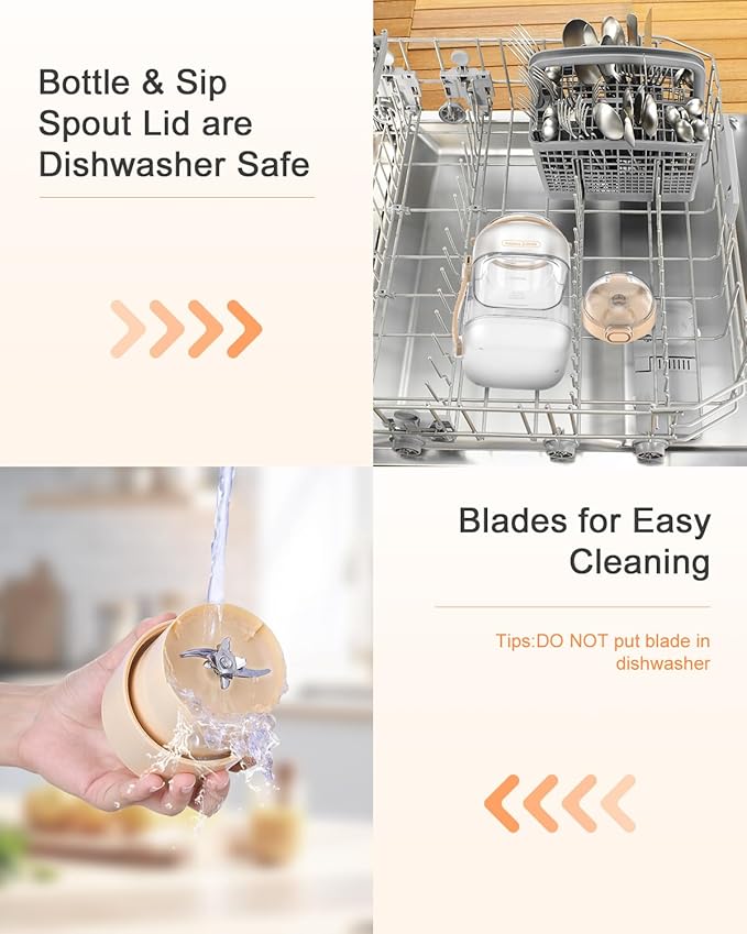 - 【Effortless Cleaning & Safety and USB Type-C Easy to Charge】Cleaning is a breeze! Our portable blender for smoothies is crafted with smooth surfaces, making it a breeze to wipe clean after use. These accessories can easily release your hands(Except the blade) withstand the cleaning power of your dishwasher.