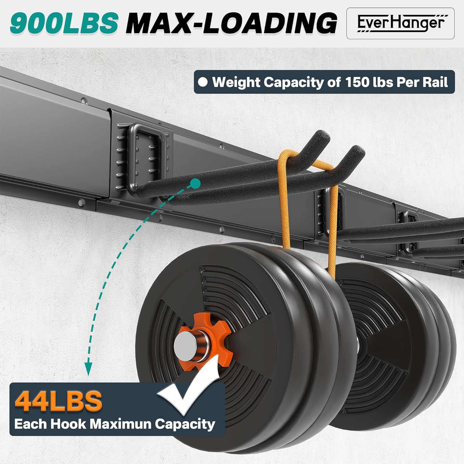 - Heavy-Duty & Durable: Built with high-quality steel and capable of holding up to 900 lbs. The powder-coated finish resists rust, while rubber-coated sleeves protect both hooks and tools for long-lasting durability
