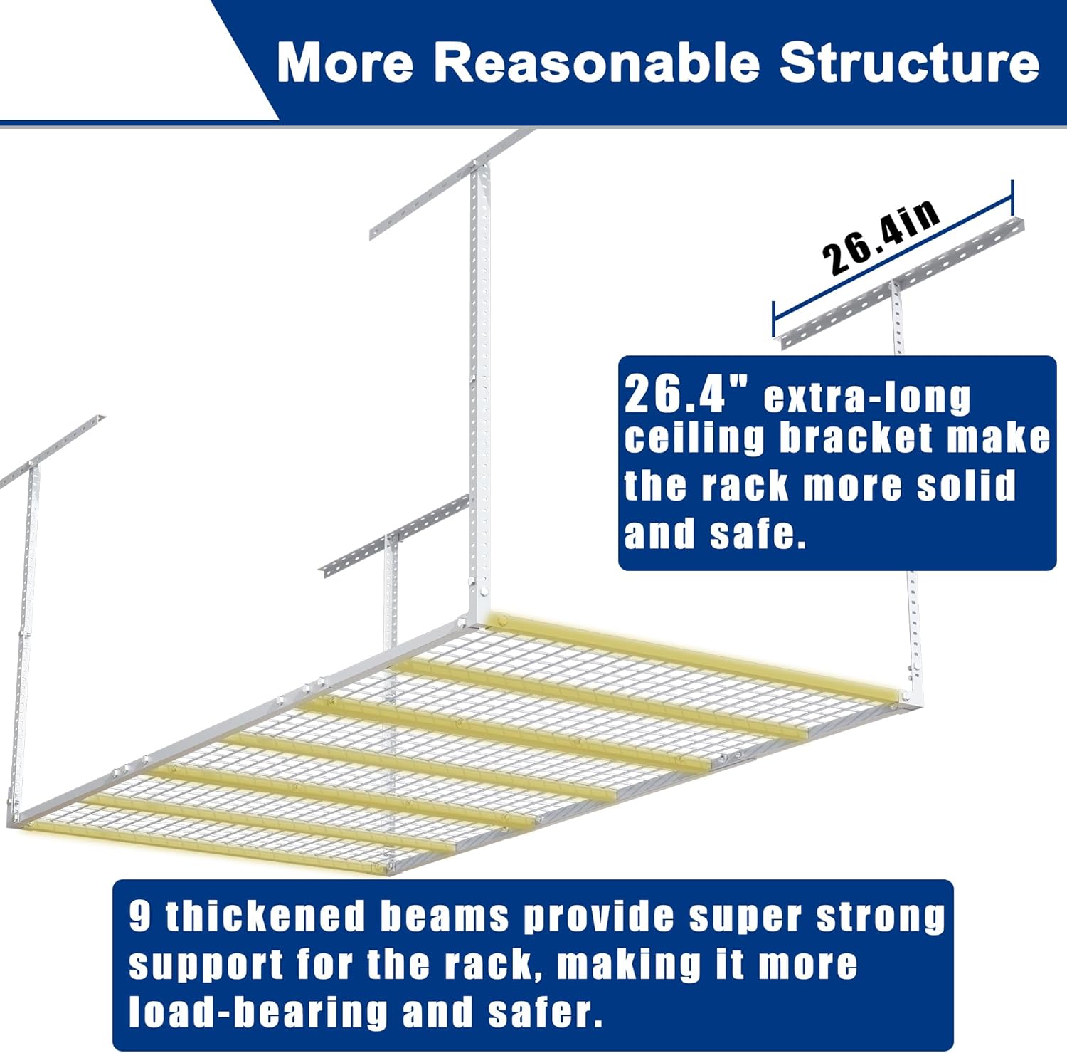 GIOTORENT 3x6FT Heavy Duty Overhead Garage Storage Rack - Adjustable Ceiling Shelving with 520lbs Weight Capacity, Metal Garage Organization System, White