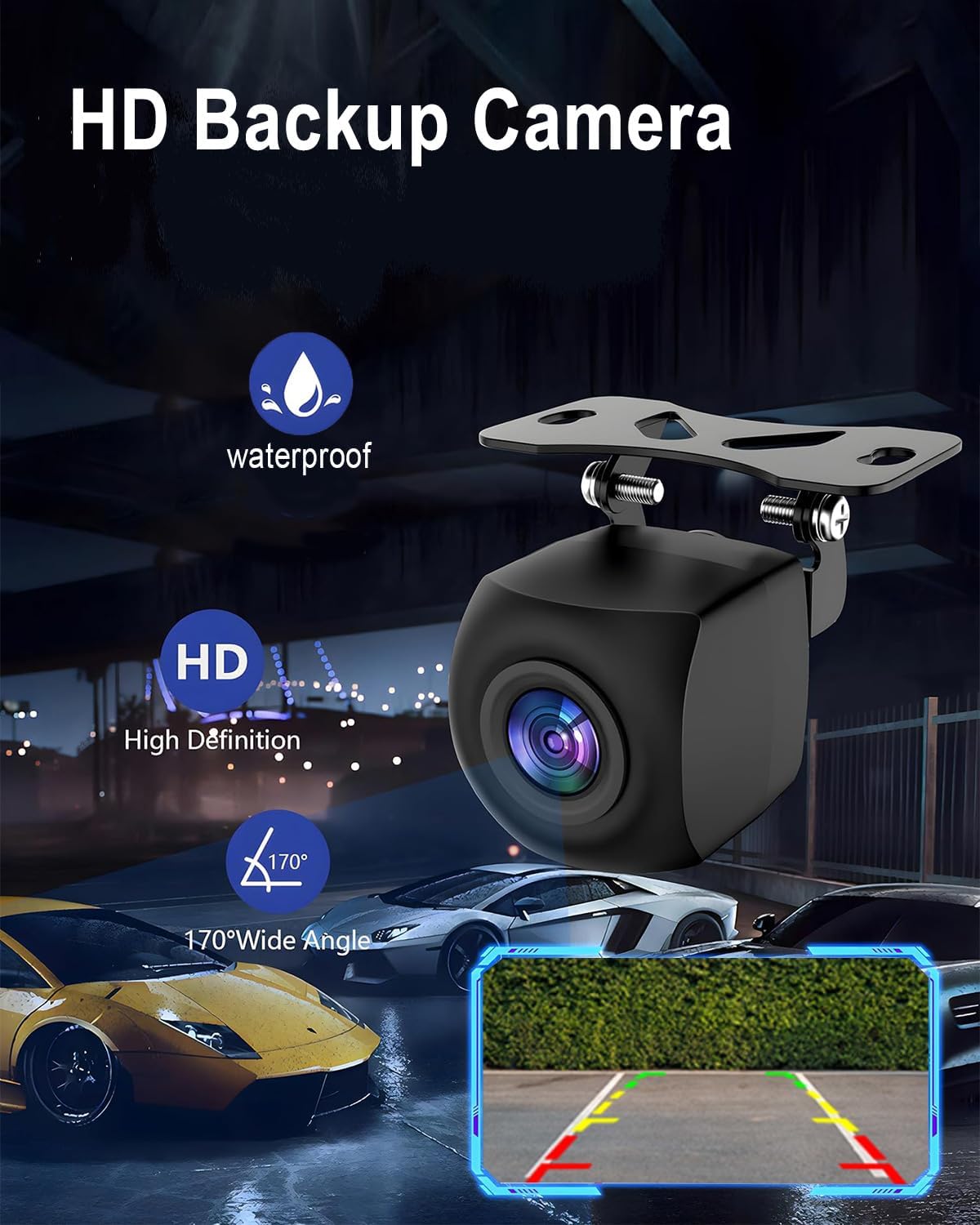 - ăVoice Control & Safe drivingăWith voice control through Siri or Google Assistant, you can navigate various features safely without needing to touch the screen. The device includes a 1080P waterproof backup camera, which enhances safety while parking and reversing, particularly at night.