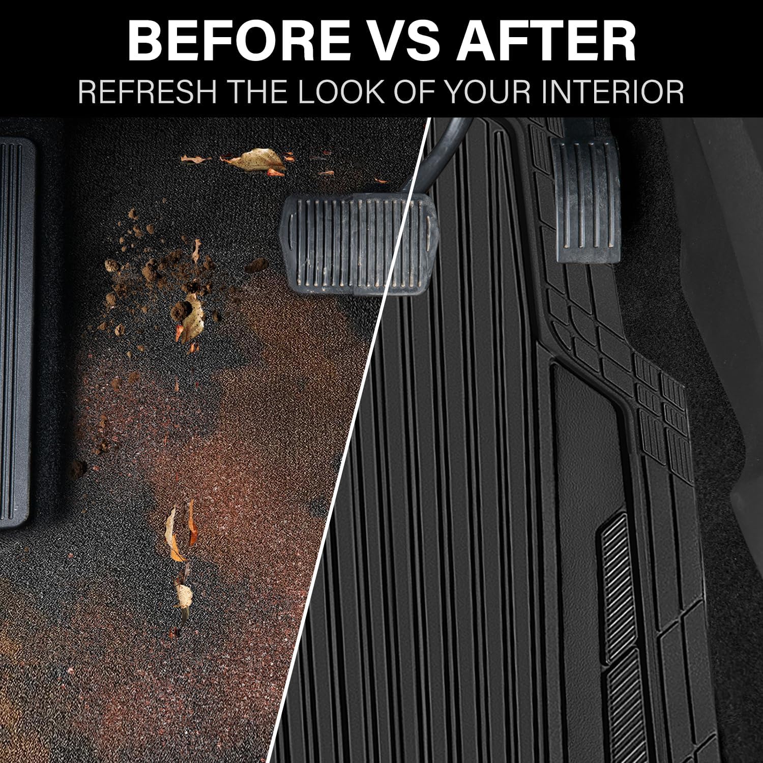 - ăAll Weather All Season ProtectionăCAR PASS heavy duty rubber solid black car mats use for all season.Ridge channels specifically design to prevent fluids from leaking onto carpets,the deep channels also trap any mud, dirt, water or snow that gets in your car.