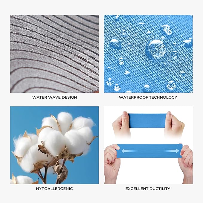 - Advanced Waterproof Adhesion – Durable sports tape withstands sweat, showers, and intense workouts, staying securely in place for up to 5 days.
