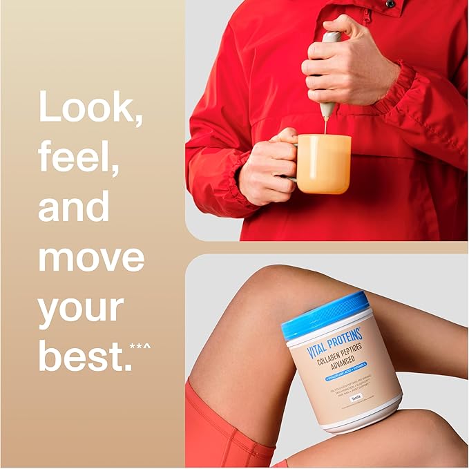 Vital Proteins Collagen Peptides Advanced, Hydrolyzed Peptides with Hyaluronic Acid and Vitamin C - Vanilla Flavor Powder, 21oz