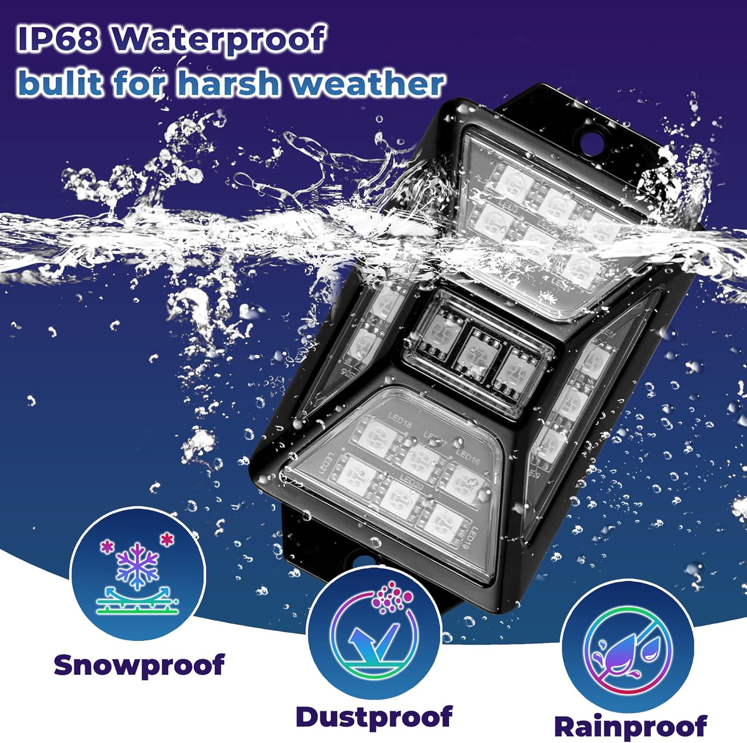 - ăBrighter,Smarter Lightingă252 LED beads and special 5 sided full angle design for 360°coverage,delivering 3 times brighter luminosity than other lamp beads, and offer 16 million colors and a chase color mode.The ultimate Led rock lights for off-road vehicles