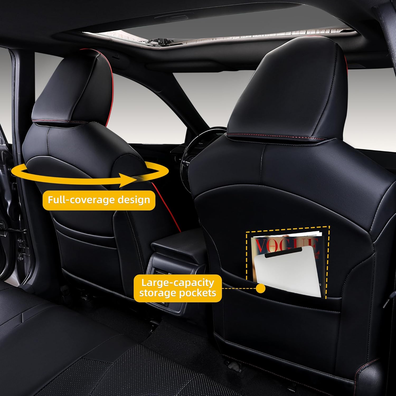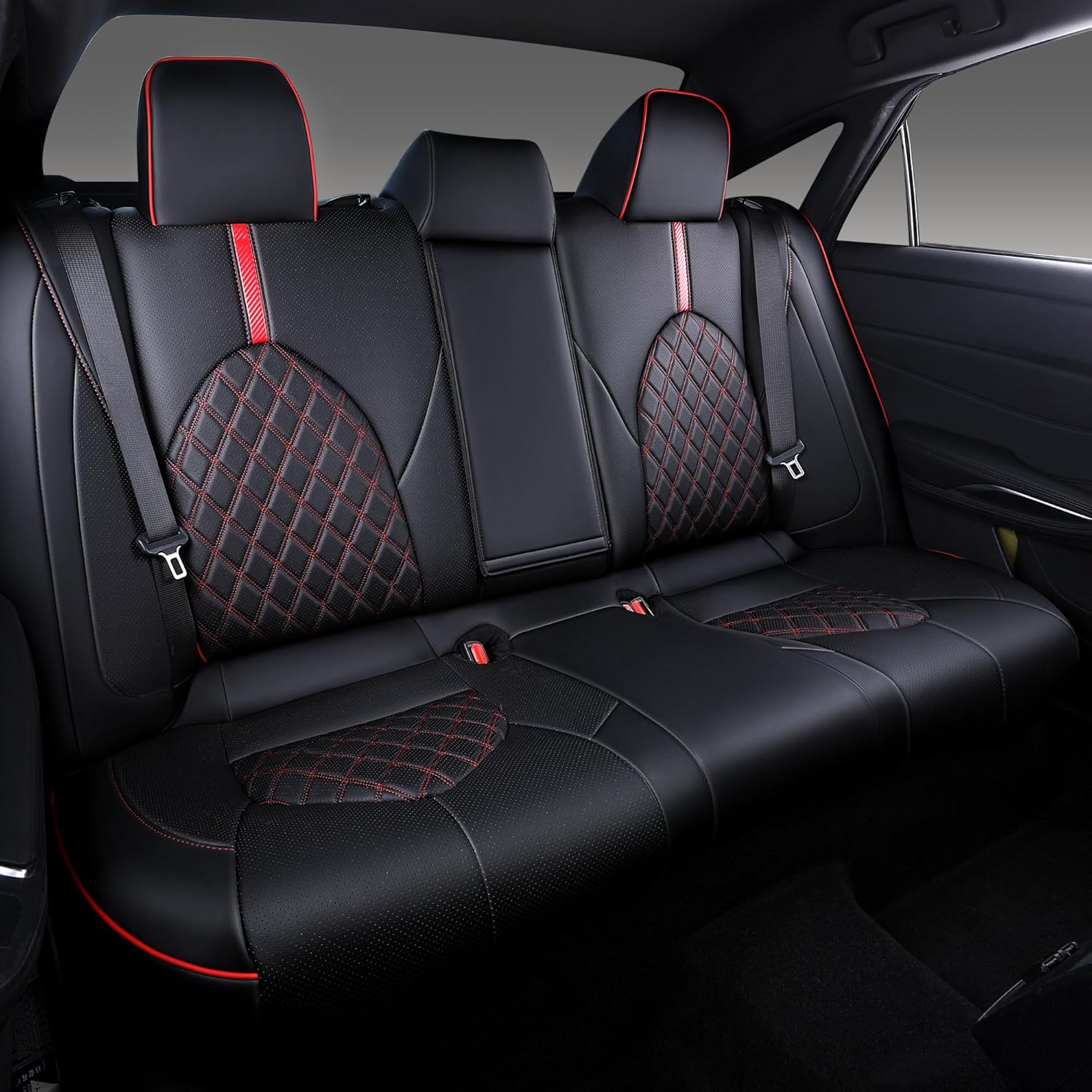 Custom Fit Camry Seat Covers for Toyota Camry LE,SE,SE Nightshade 2018-2024 Full Coverage Waterproof Breathable Leather Car Seat Covers Full Set(Black with Red Trim)