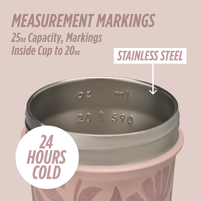 BlenderBottle Strada Flip Shaker Cup Insulated Stainless Steel Water Bottle with Wire Whisk, 25-Ounce, Brown Flowers