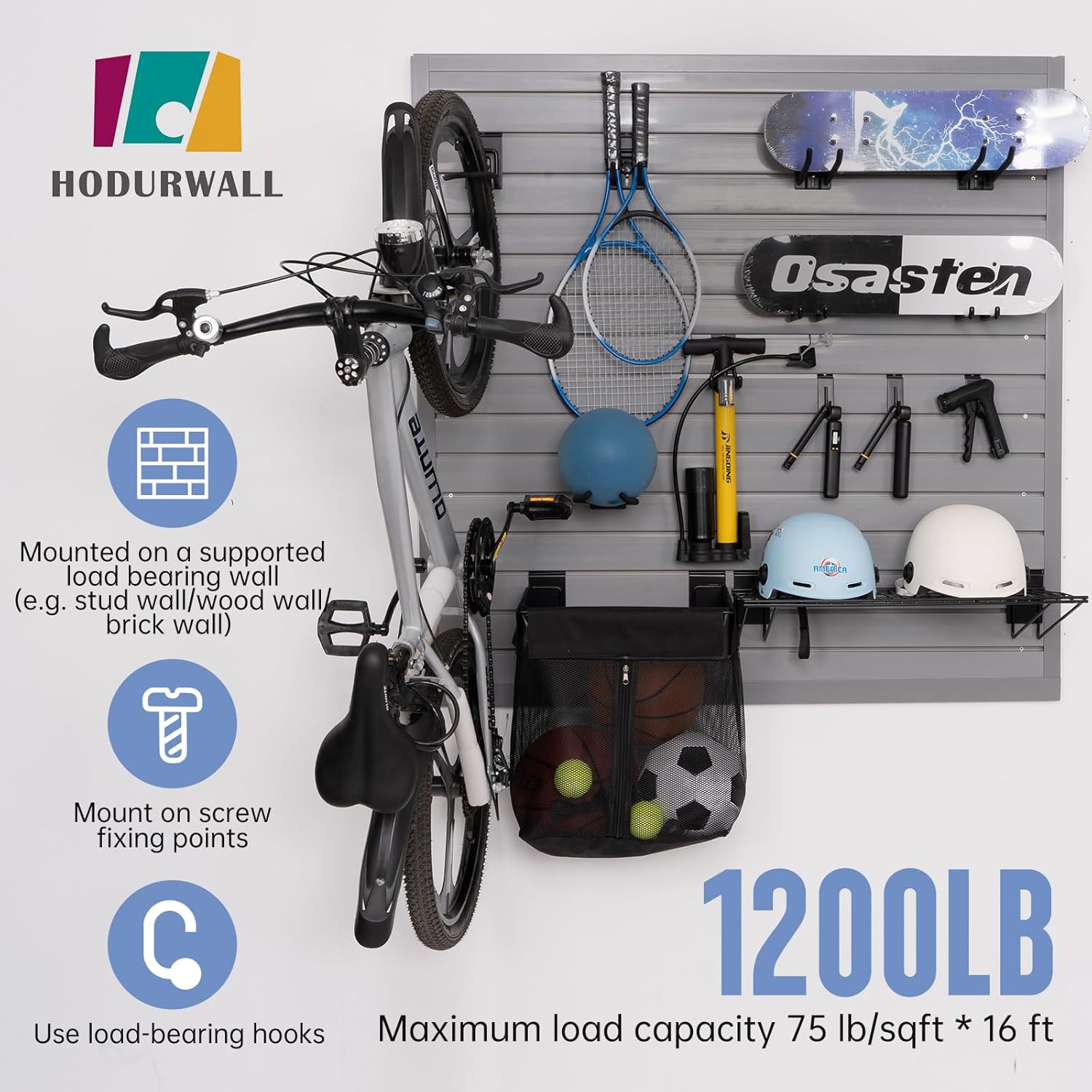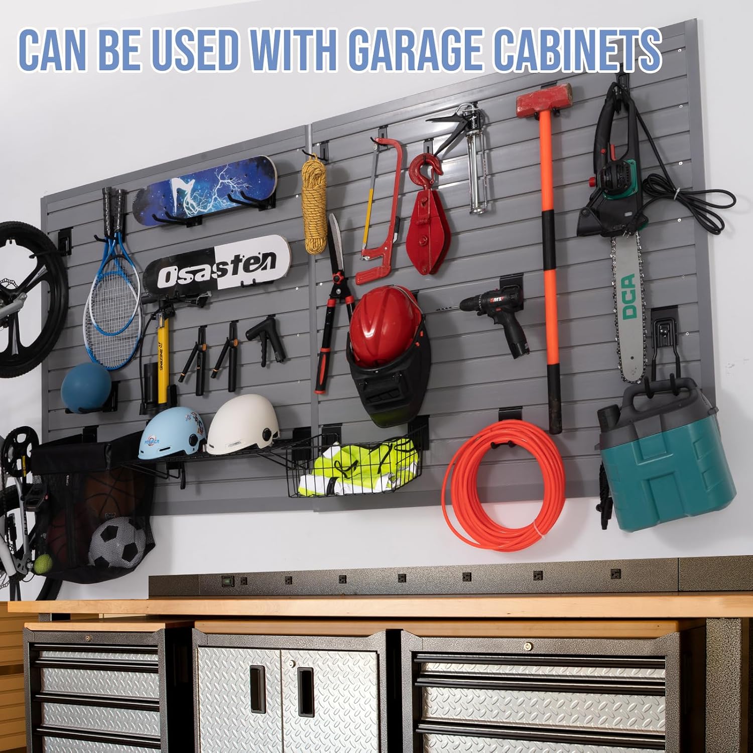 - EFFICIENT GARAGE ORGANIZATION: Say goodbye to a cluttered garage with our slatwall. It offers a variety of accessories and hooks to easily hang tools, sports equipment and other items. This efficient organization system ensures that everything is in its place, making it easier to find what you need when you need it.
