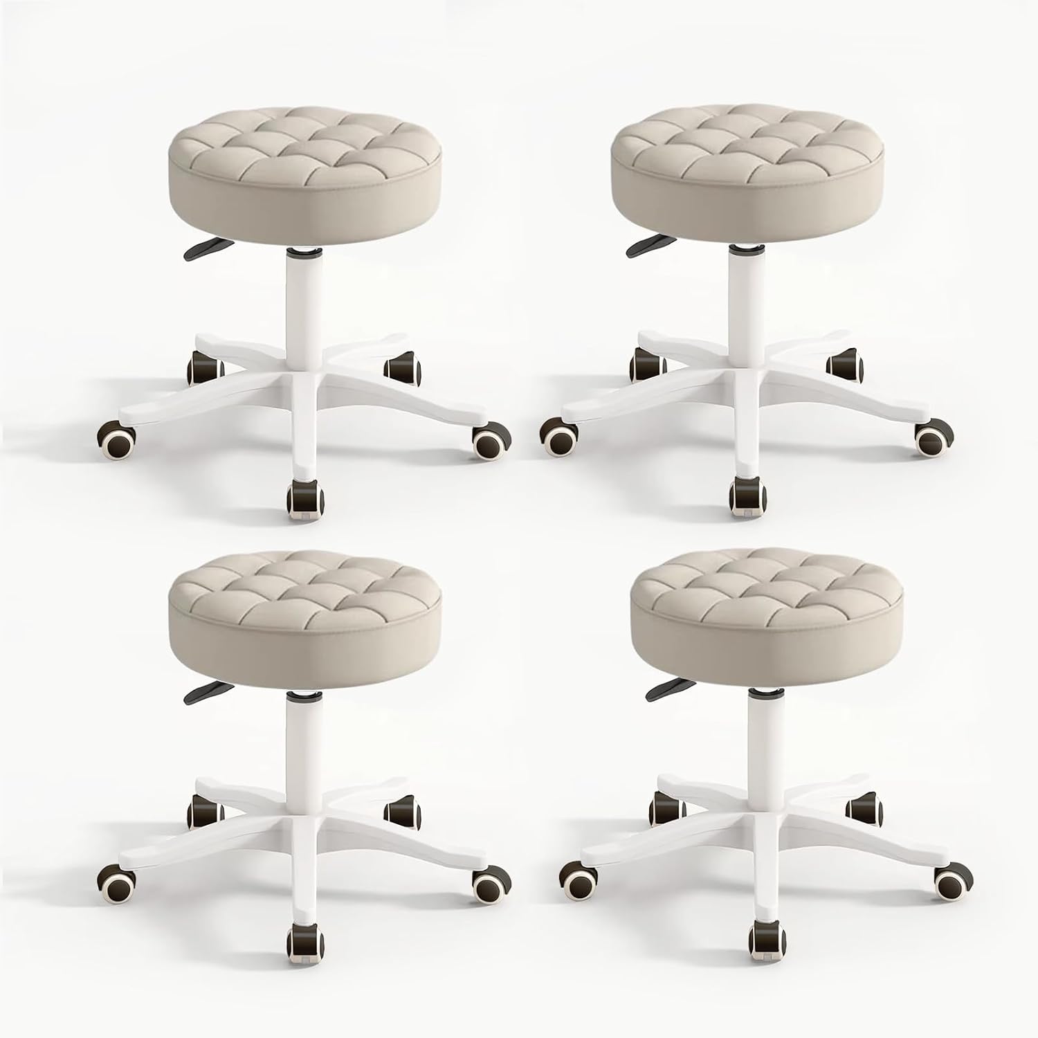 Small Chair Round Rolling Stool with Wheels PU Leather Height Adjustable Swivel Drafting Work SPA Salon Stools Home Office Chair
