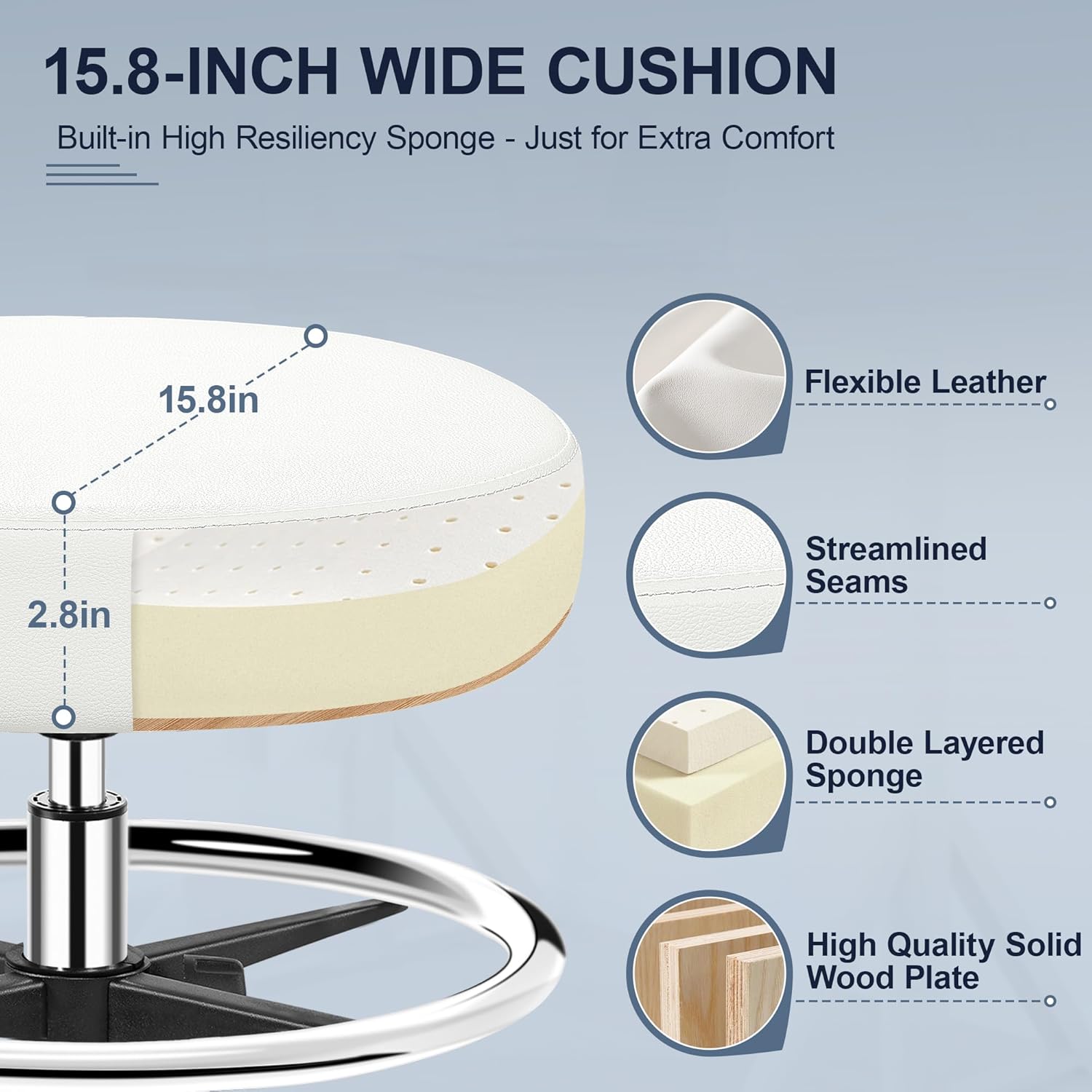 - Details Determine Quality: This Rolling Stool is made of quality PU leather, making it easy to clean and maintain. It's filled with soft, high-density memory foam and features smooth, silent rollers for a comfortable seating experience for long periods of time