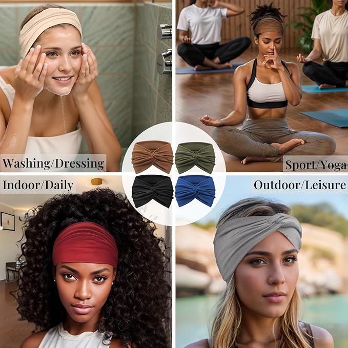 - Multi-Pack Headbands for Daily Use - Get 4 stylish and versatile turban headbands in one set! With a variety of color options to choose from, you can easily match them with different outfits—whether you're going for a sporty look, a casual day, or an elegant occasion. These hair scarves also make an excellent gift for family and friends who love fashionable and functional hair accessories.